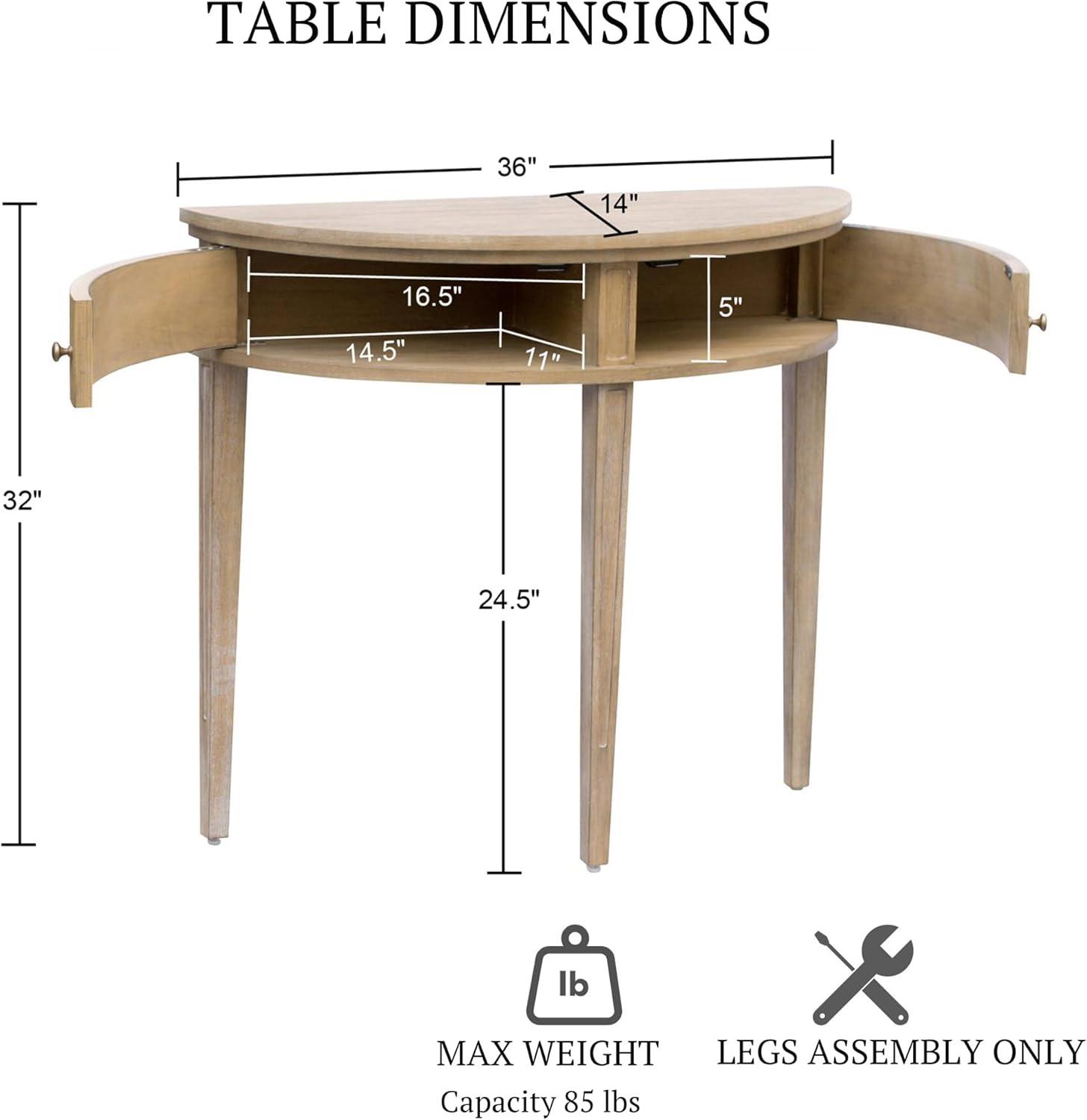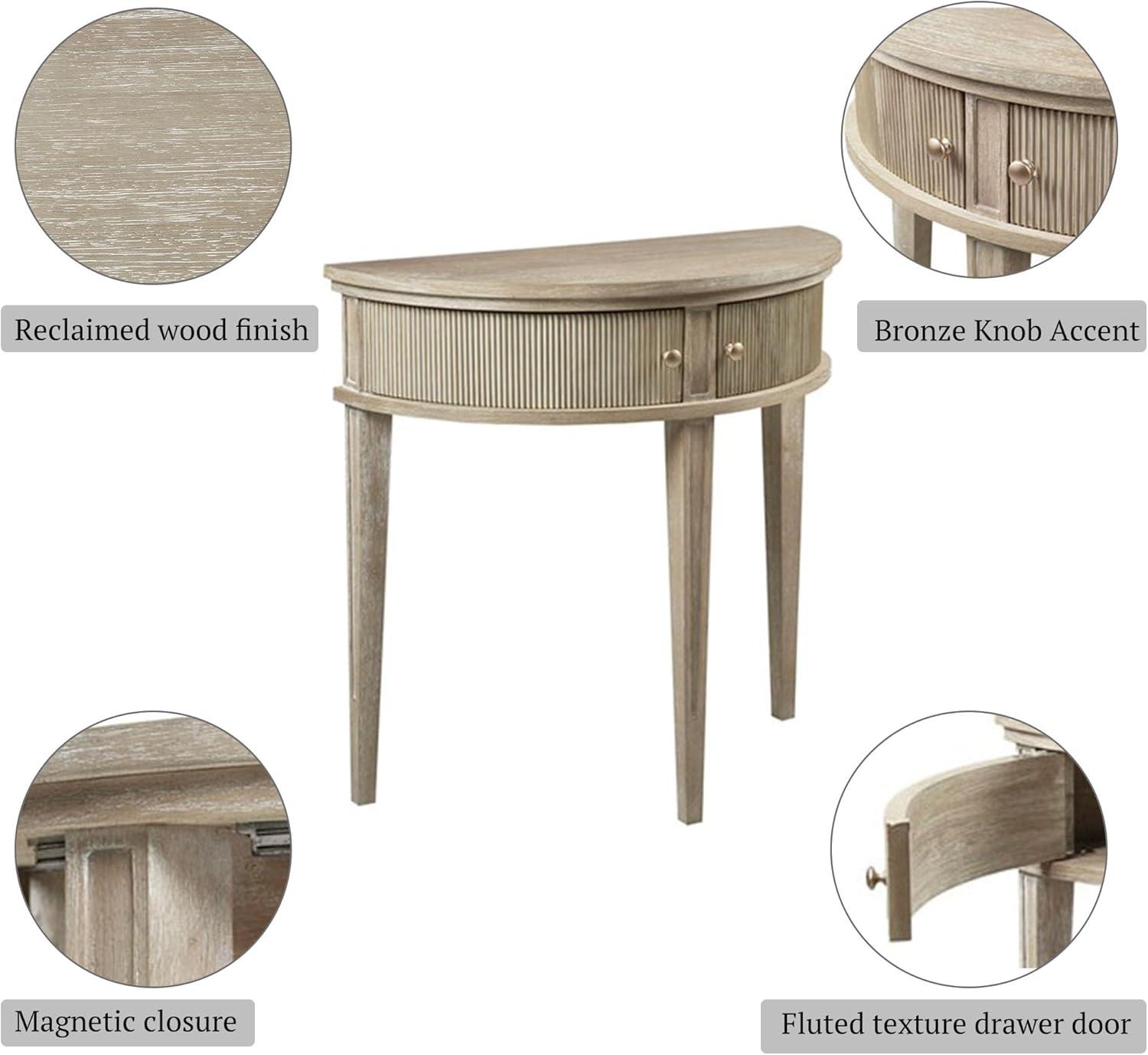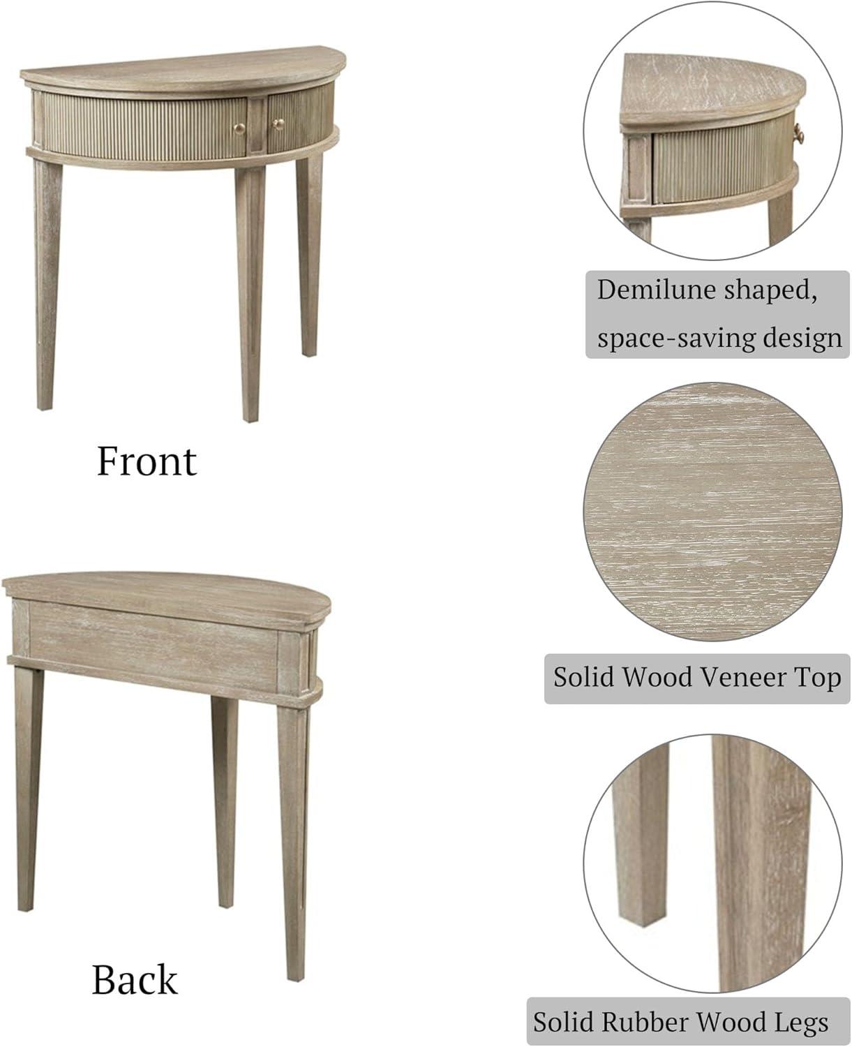 Martha Stewart Crestview Hall Console Table for Entryway with Storage, Solid Rubber Wood Frame, Vintage Demilune Shape, Bronze Knobs, Farmhouse, Accent Living Room Furniture Décor – Reclaimed Greige(Reclaimed Greige)