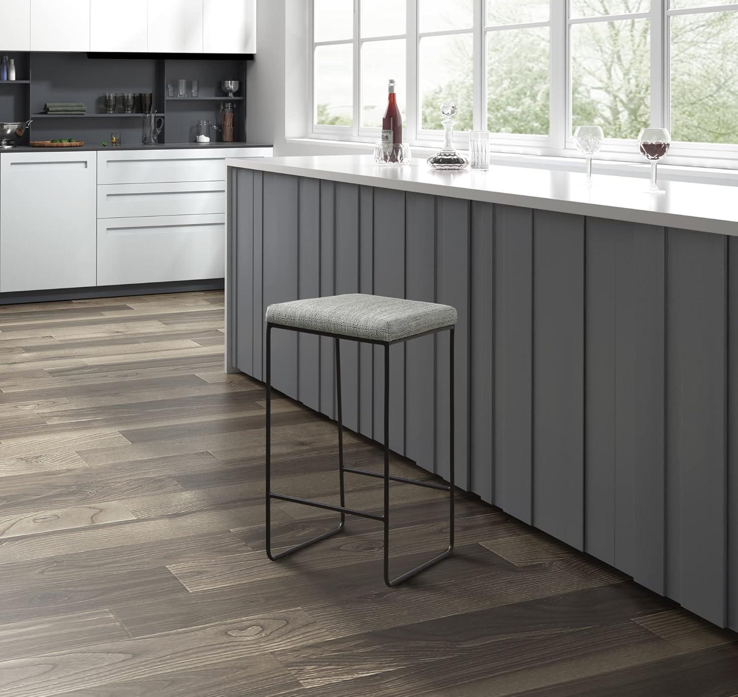 Martha Stewart Delaney Upholstered Mid-Century Modern Counter Stool with Turn Legs, Footrest and Kickplate for Kitchen Island Chairs Dining Room Furniture, Home Bar, Blue(Hastings)