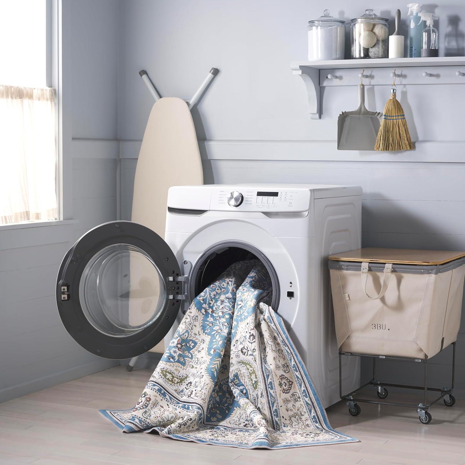Martha Stewart x SAFAVIEH Machine Washable Area Rug Collection – 5′ x 8′, Rust & Gold, Slip Resistant & Easy Cleaning, Ideal for Ideal for Living Room, Bedroom, Dining Space (MSRW195Q)(Dark Blue/Light Blue)