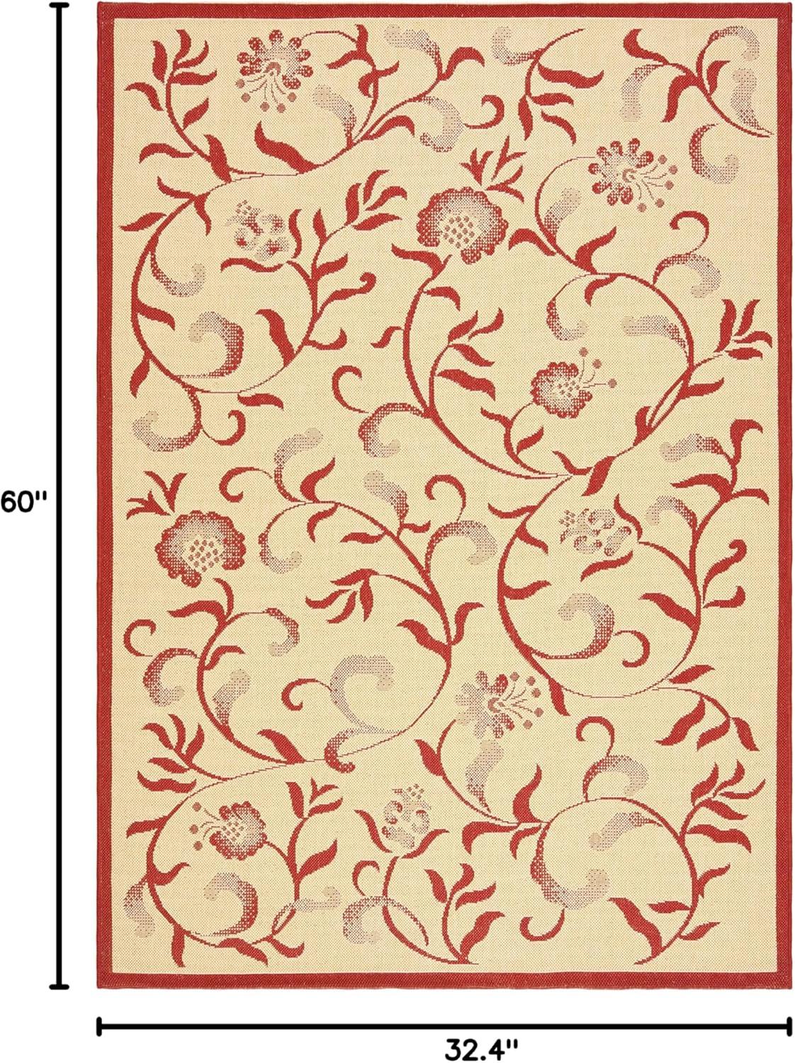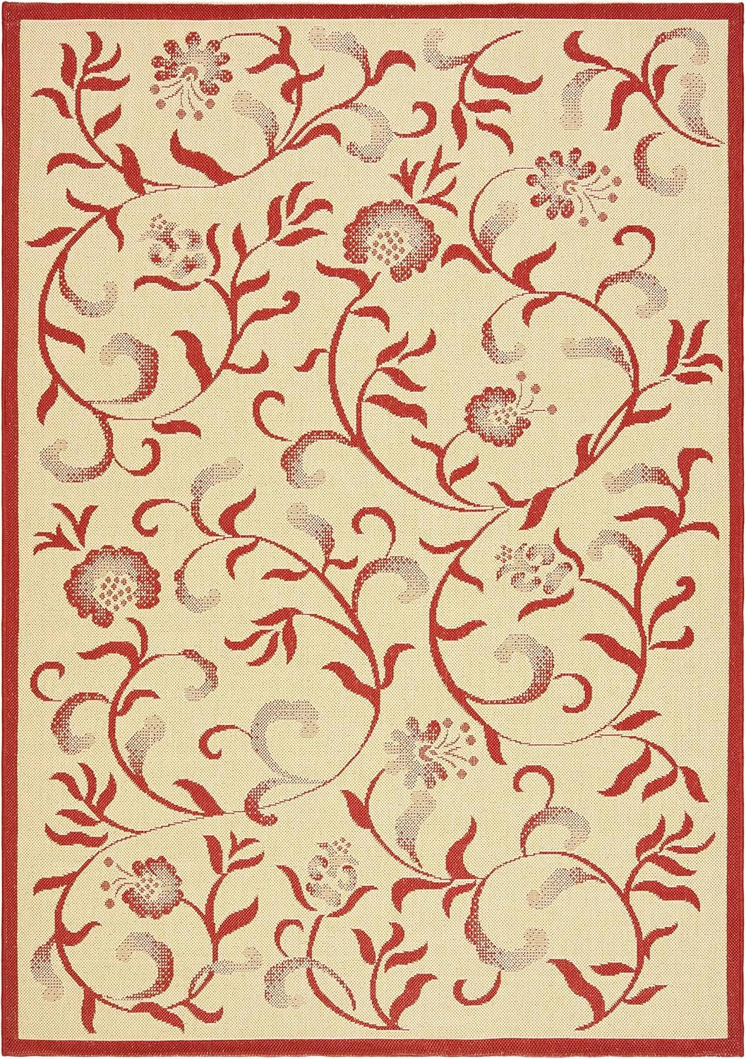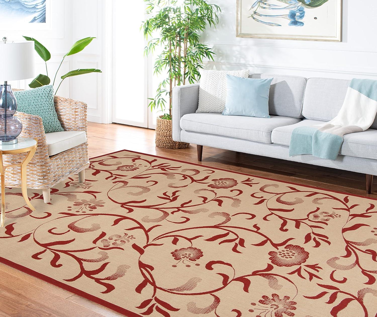 Martha Stewart x SAFAVIEH Outdoor Area Rug Collection – 8′ x 11’2″, Cream & Brown, Weather Resistant & Washable, Ideal for Patio, Backyard, Mudroom, Deck, Dining Space (MSR4251-12)(Creme/Red)