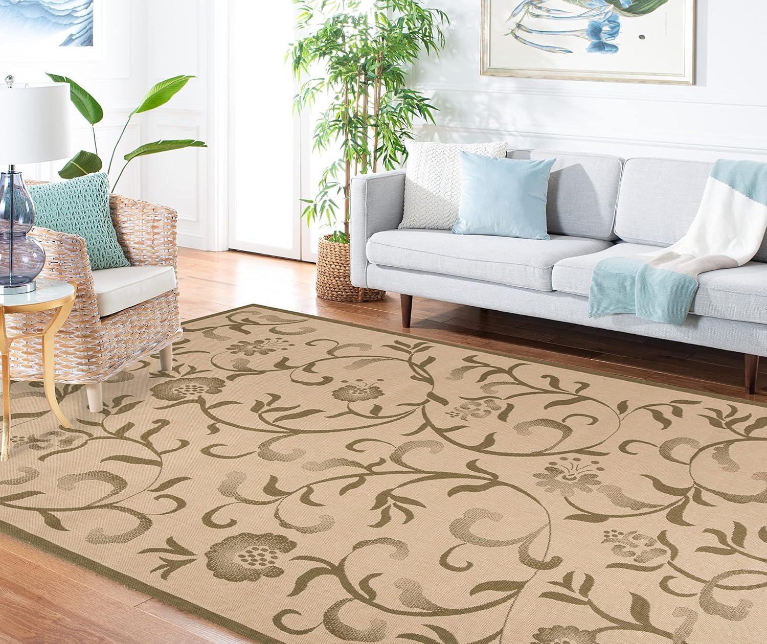 Martha Stewart x SAFAVIEH Outdoor Area Rug Collection – 8′ x 11’2″, Cream & Brown, Weather Resistant & Washable, Ideal for Patio, Backyard, Mudroom, Deck, Dining Space (MSR4251-12)(Cream/Green)