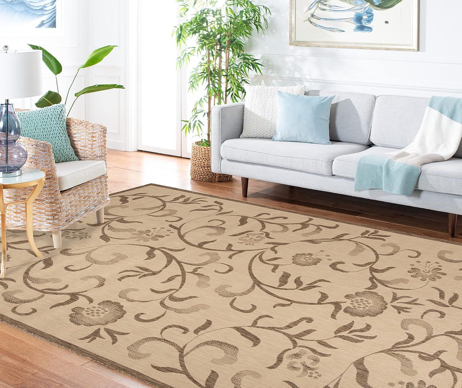 Martha Stewart x SAFAVIEH Outdoor Area Rug Collection – 8′ x 11’2″, Cream & Brown, Weather Resistant & Washable, Ideal for Patio, Backyard, Mudroom, Deck, Dining Space (MSR4251-12)(Creme/Brown)