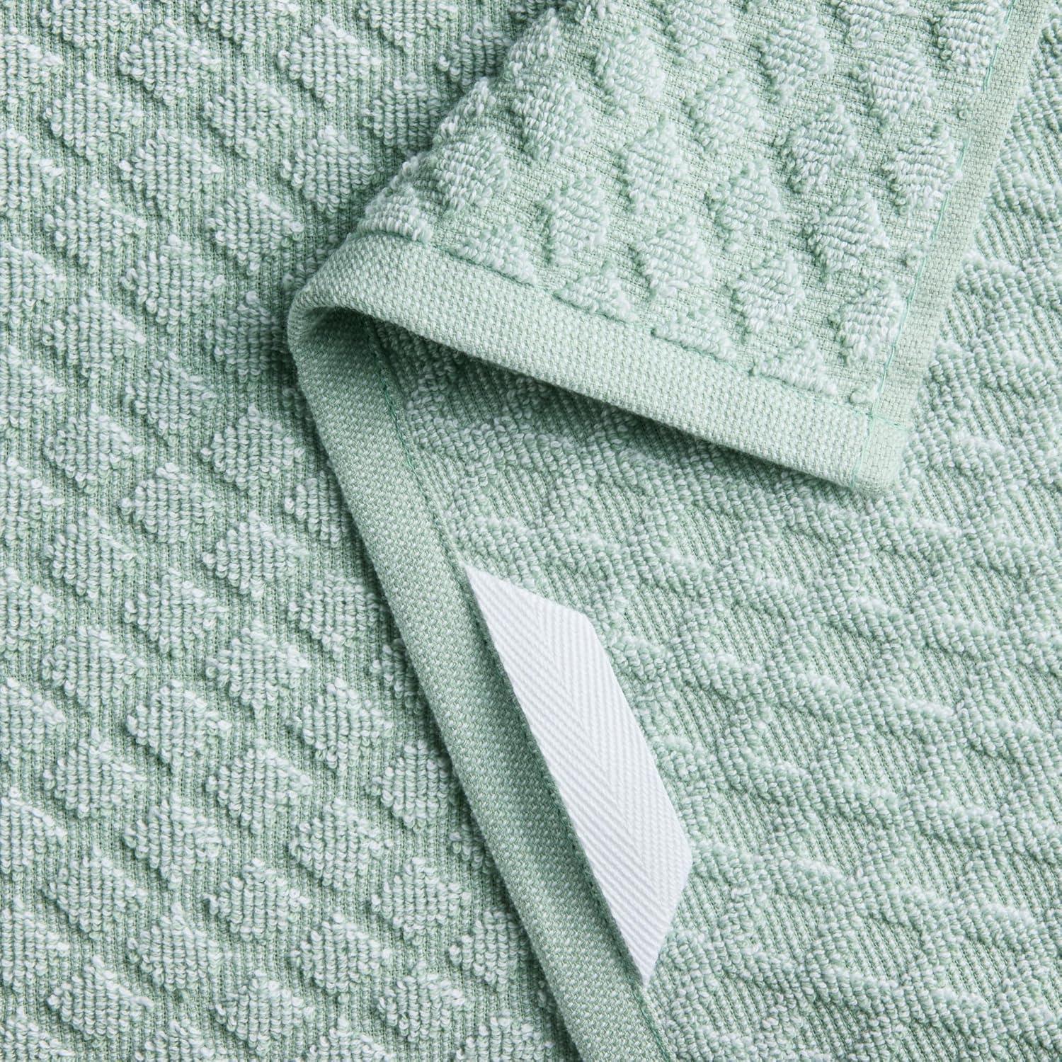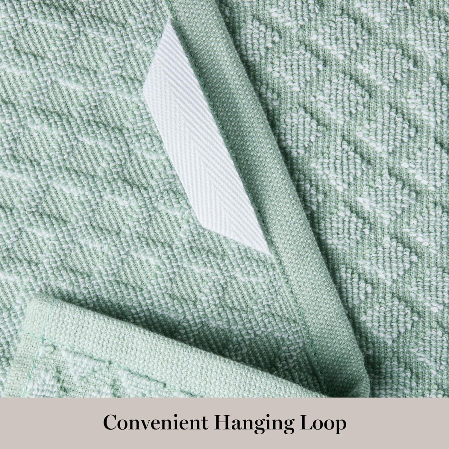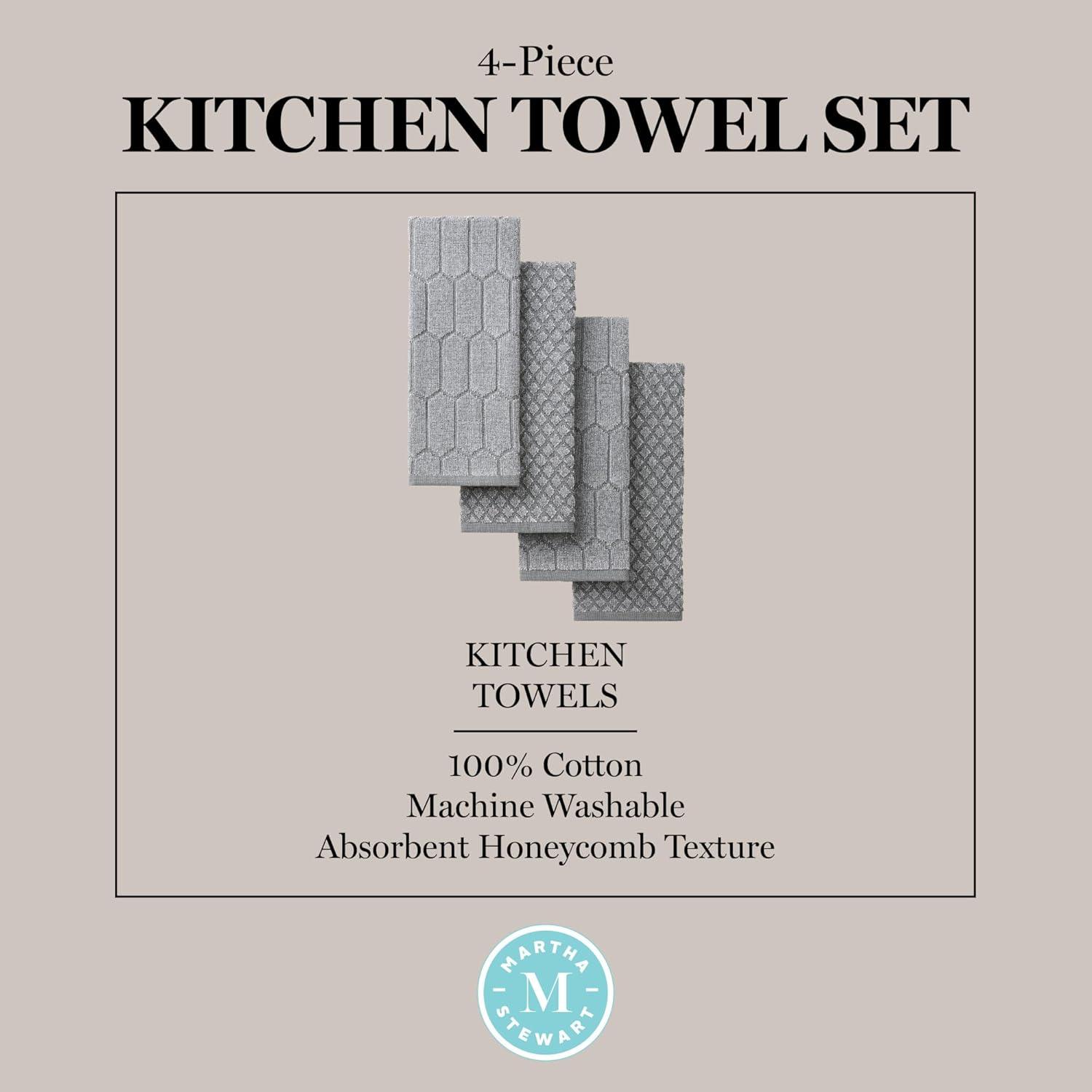 Martha Stewart Honeycomb Chambray Textured Kitchen Towel 4-Pack Set, 100% Cotton with Absorbent Terrycloth, Decorative Kitchen Towels, Mint Green, 16″x28″(Grey)