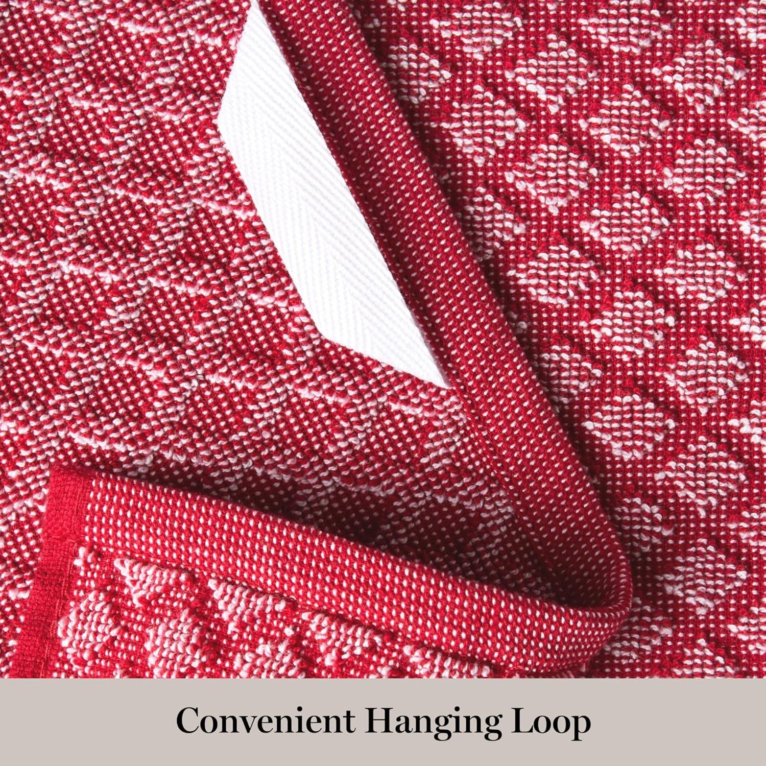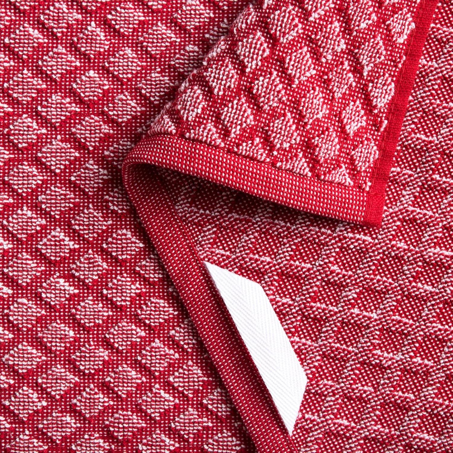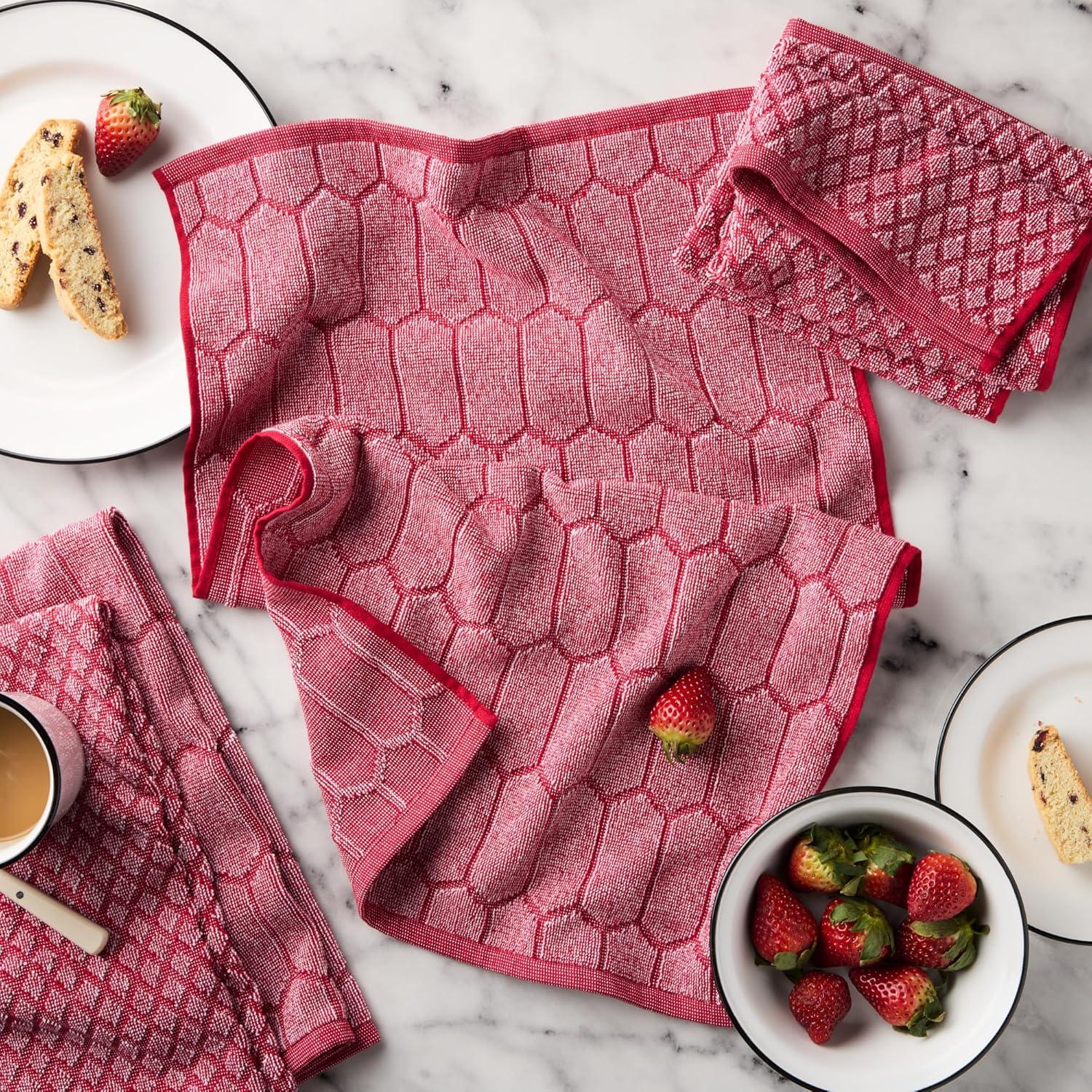 Martha Stewart Honeycomb Chambray Textured Kitchen Towel 4-Pack Set, 100% Cotton with Absorbent Terrycloth, Decorative Kitchen Towels, Mint Green, 16″x28″(Red)