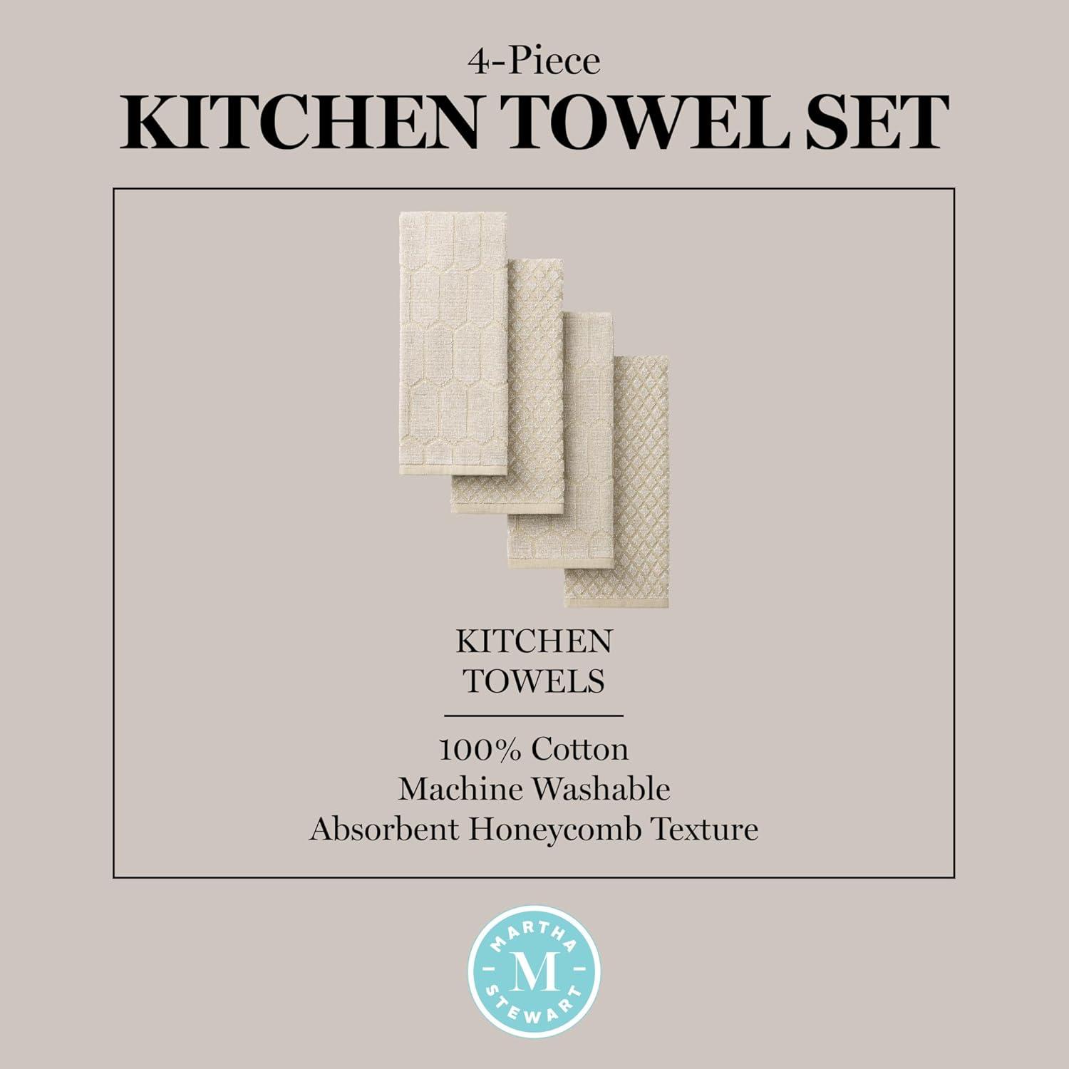 Martha Stewart Honeycomb Chambray Textured Kitchen Towel 4-Pack Set, 100% Cotton with Absorbent Terrycloth, Decorative Kitchen Towels, Mint Green, 16″x28″(Natural)