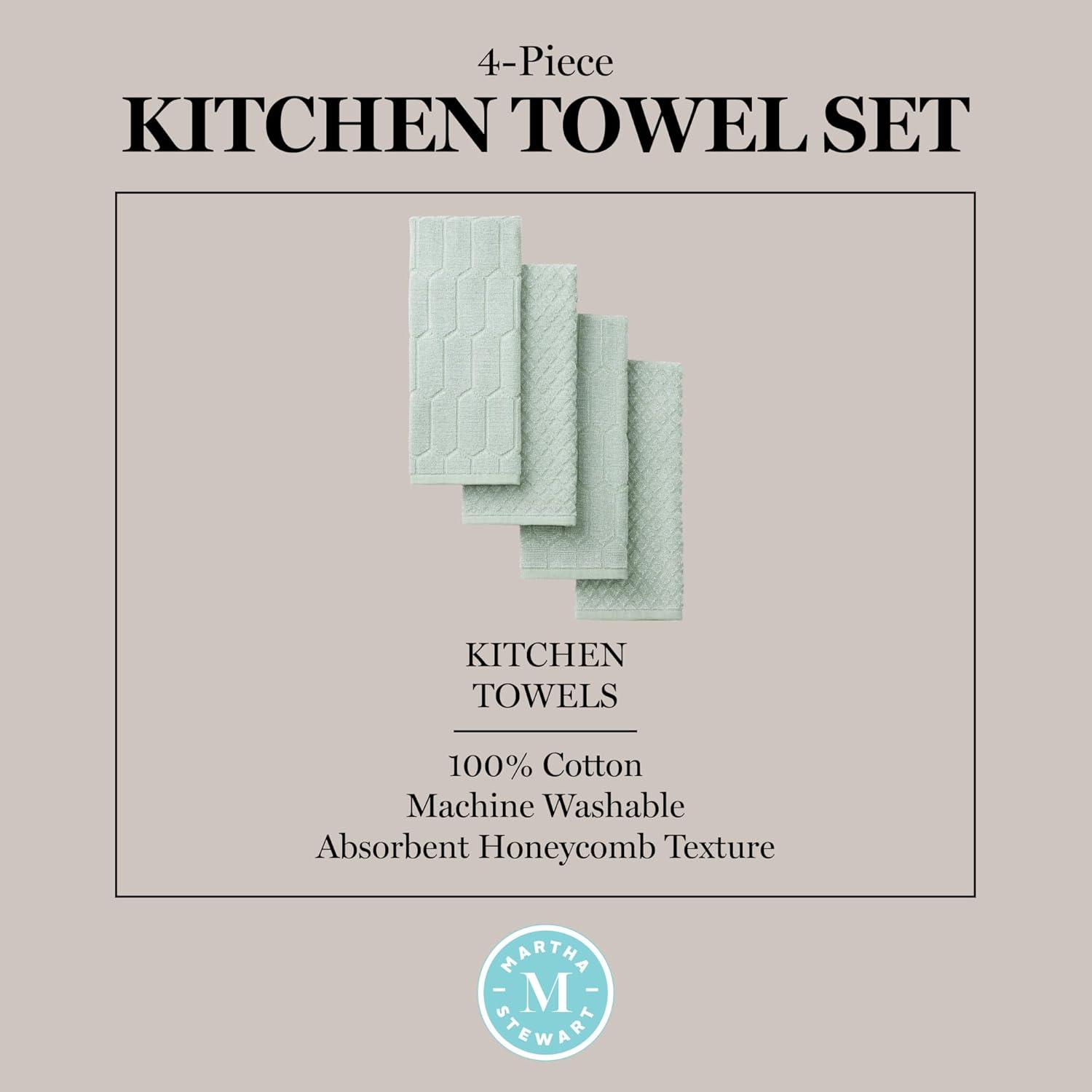 Martha Stewart Honeycomb Chambray Textured Kitchen Towel 4-Pack Set, 100% Cotton with Absorbent Terrycloth, Decorative Kitchen Towels, Mint Green, 16″x28″(Mint Green)