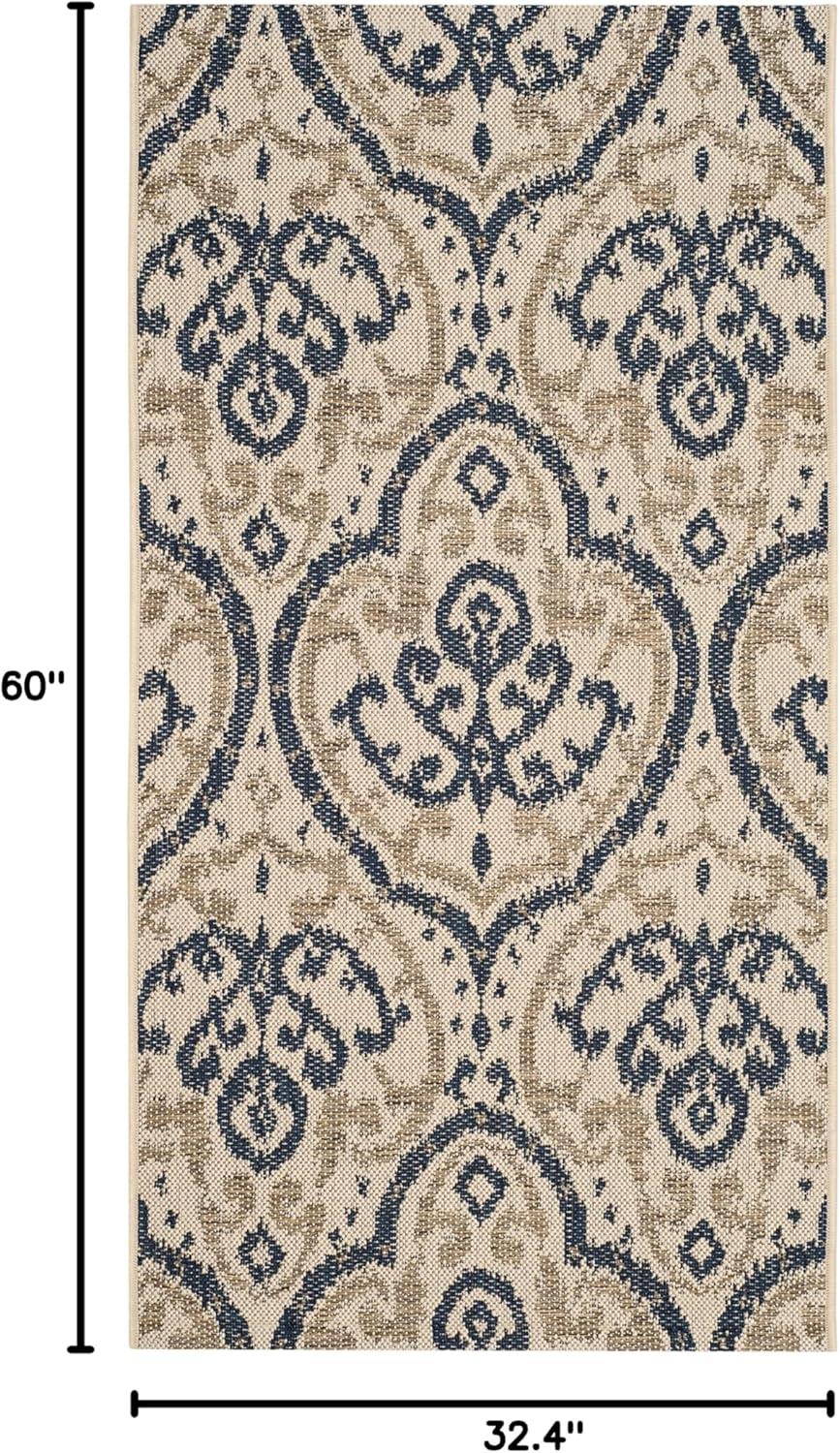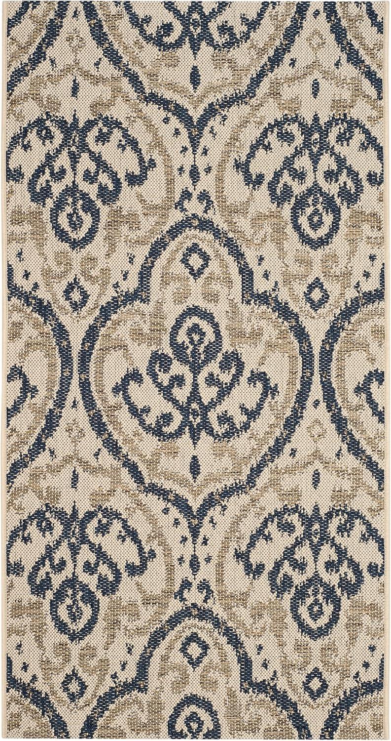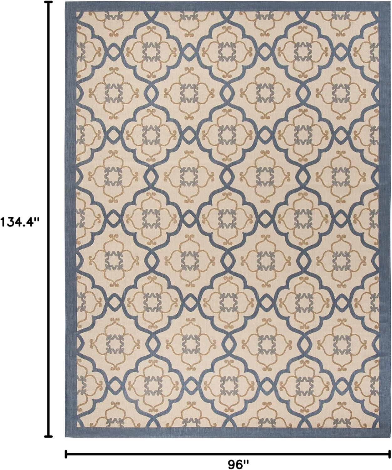 Martha Stewart x SAFAVIEH Outdoor Area Rug Collection – 8′ x 11’2″, Beige & Anthracite, Weather Resistant & Washable, Ideal for Patio, Backyard, Mudroom, Deck, Dining Space (MSR4114-23612)(Beige/Navy)