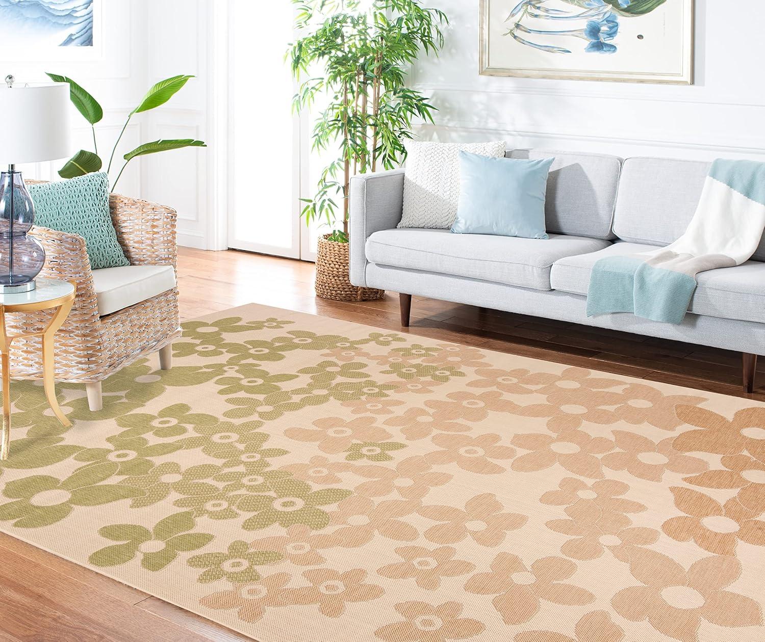 Martha Stewart x SAFAVIEH Outdoor Area Rug Collection – 8′ x 11’2″, Beige & Sweet Pea, Weather Resistant & Washable, Ideal for Patio, Backyard, Mudroom, Deck, Dining Space (MSR4262)(Beige/Sweet Pea)