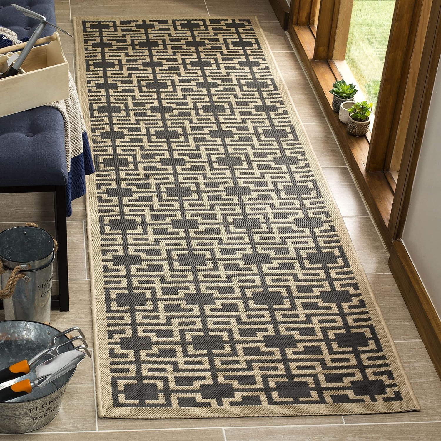 Martha Stewart x SAFAVIEH Outdoor Area Rug Collection – 8′ x 11’2″, Beige & Terracotta, Weather Resistant & Washable, Ideal for Patio, Backyard, Mudroom, Deck, Dining Space (MSR4121J)(Dark Beige/Black)