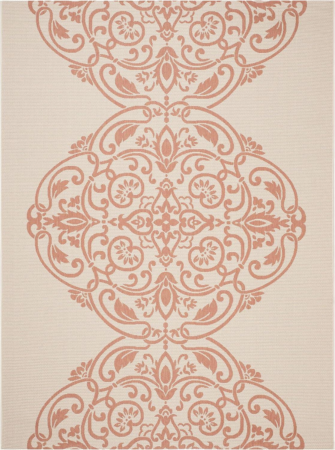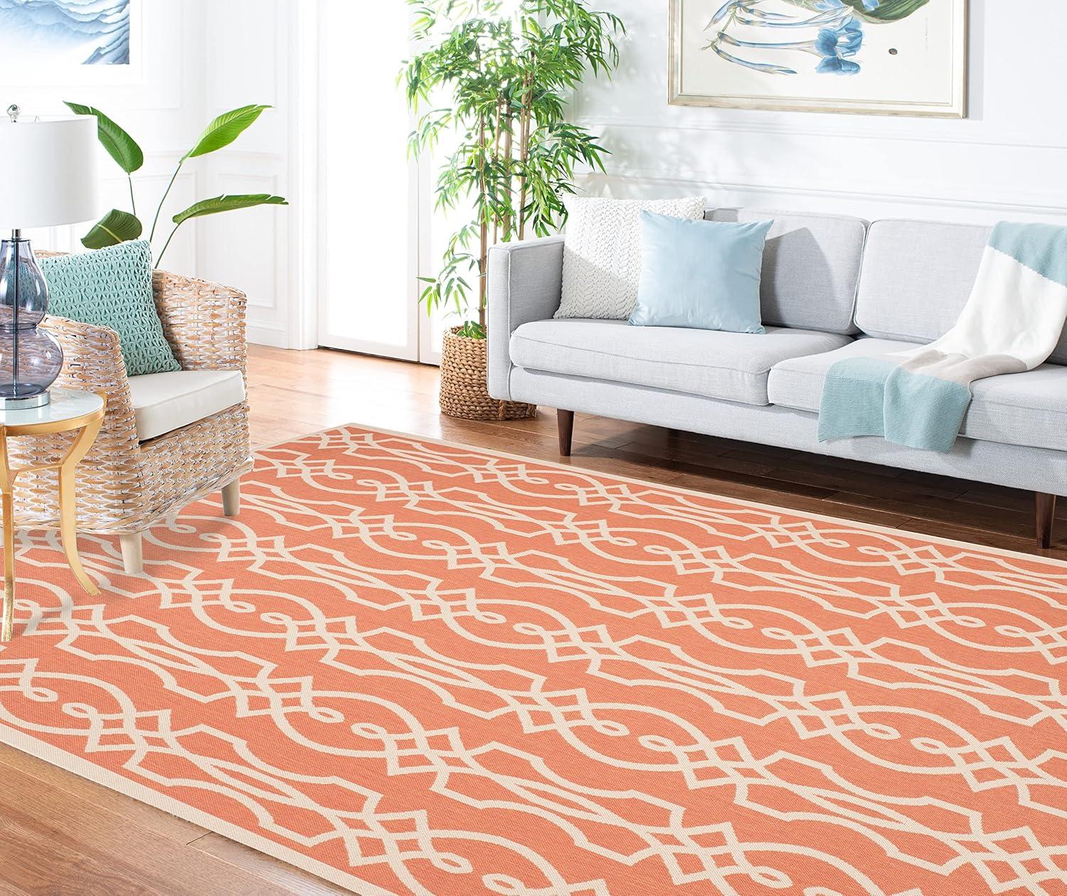 Martha Stewart x SAFAVIEH Outdoor Area Rug Collection – 8′ x 11’2″, Beige & Terracotta, Weather Resistant & Washable, Ideal for Patio, Backyard, Mudroom, Deck, Dining Space (MSR4121J)(Beige/Terracotta)
