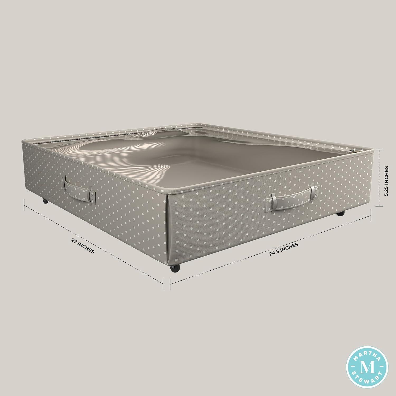 Martha Stewart Home Storage Organization Under The Bed For Blankets, Shoes, Clothes Collapsible Container with Handles, Wheels, Clear Zip Top, Set of 2 Under The Bed Storage Organizer, Cottage Dot