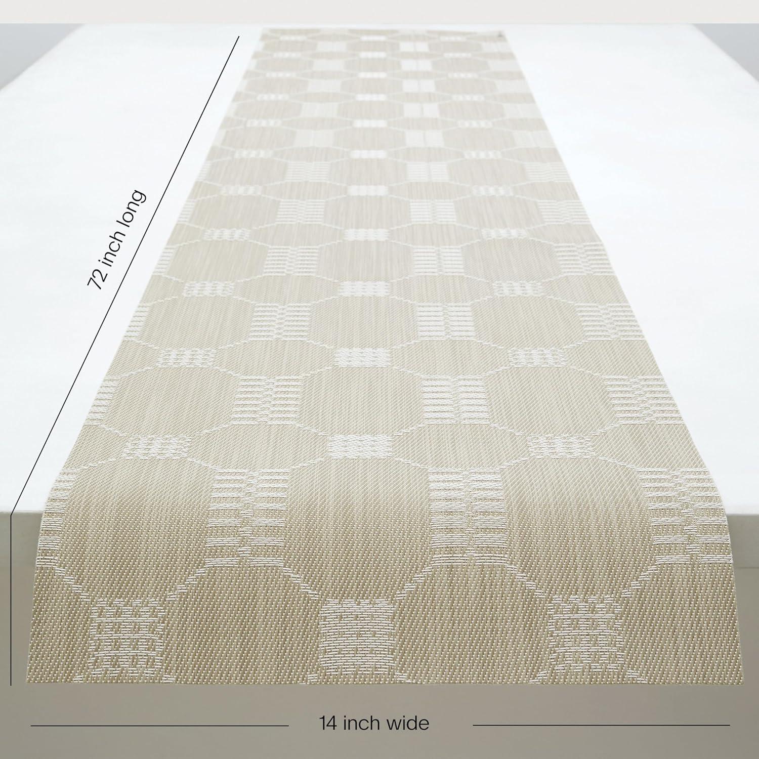 Martha by Martha Stewart | Chilewich Coverlet Table Runner in Sea – Easy Care Woven Textile – Indoor/Outdoor – Stain/Fade Resistant – 14″ x 72″(Flax)