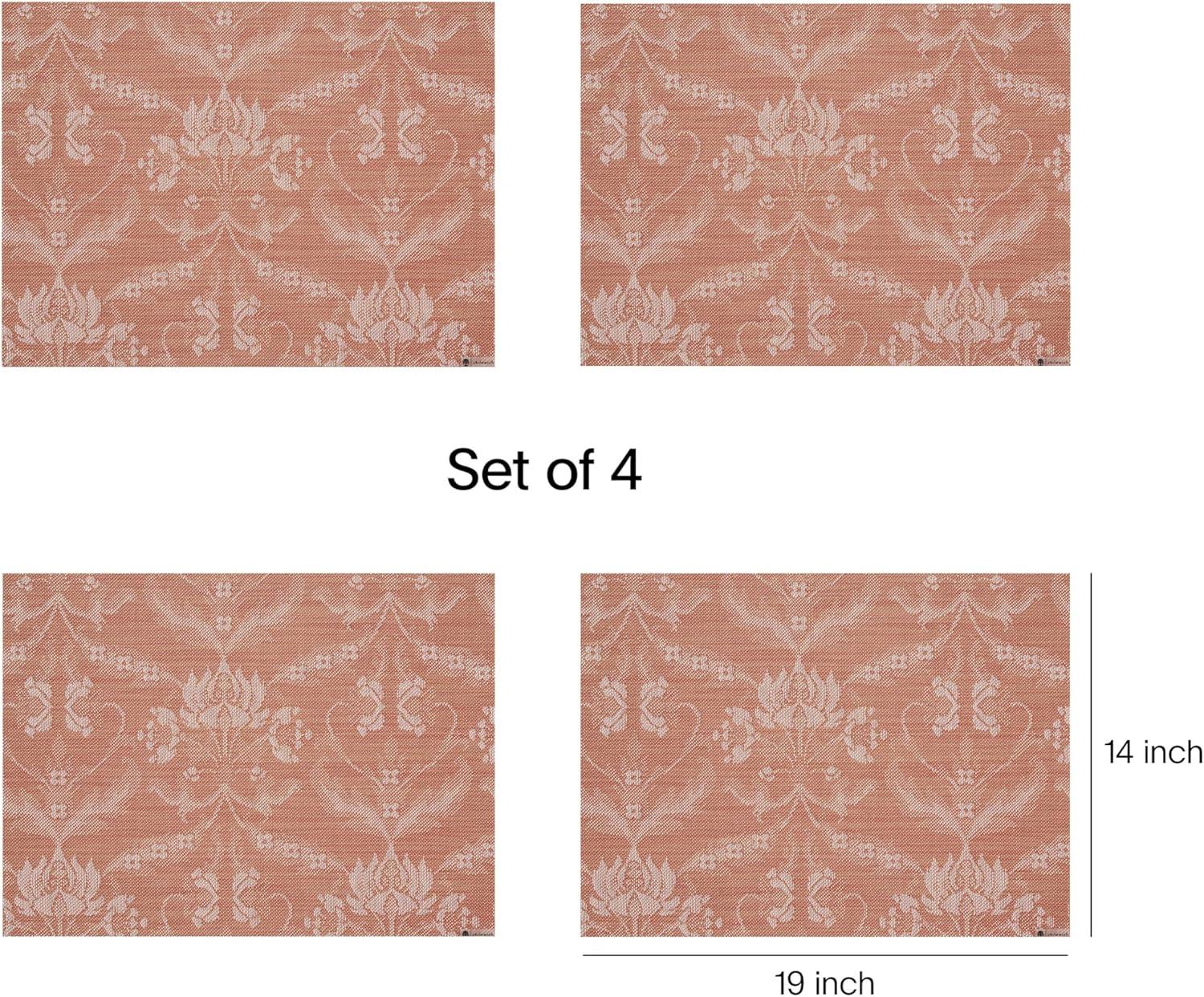 Martha by Martha Stewart | Chilewich Damask Placemats in Burnt Coral – Set of 4 – Easy Care Woven Tabletop Textiles – Indoor/Outdoor – 18.5″ x 13.5″ Rectangle(Wheat)