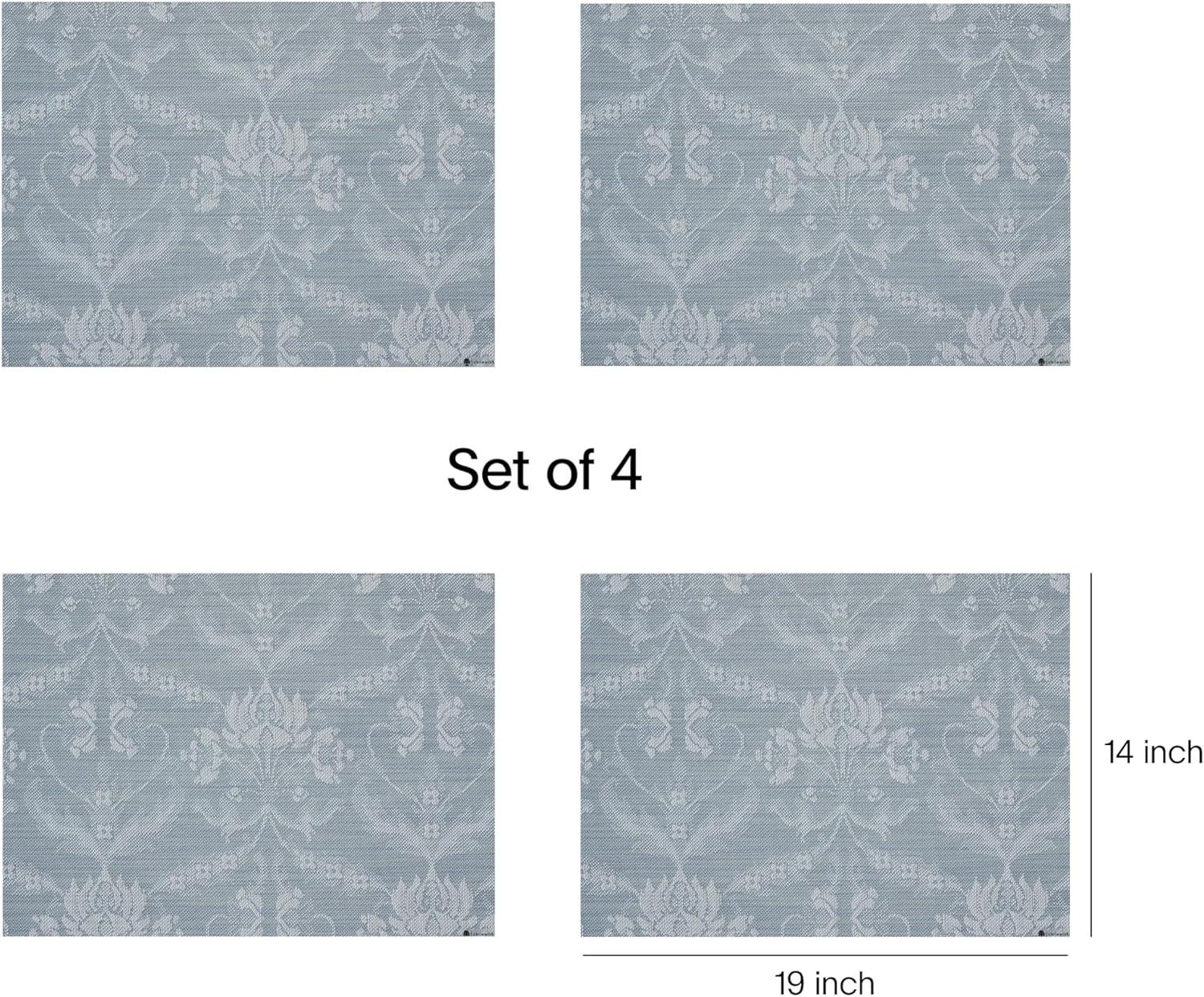 Martha by Martha Stewart | Chilewich Damask Placemats in Burnt Coral – Set of 4 – Easy Care Woven Tabletop Textiles – Indoor/Outdoor – 18.5″ x 13.5″ Rectangle(Sea)
