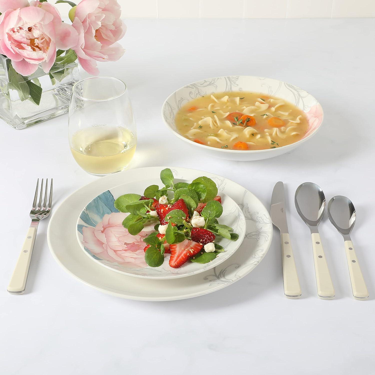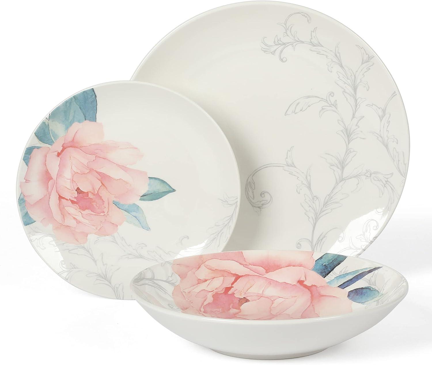 Martha Stewart Peony 12 Piece Porcelain Floral Chip and Scratch Resistant Dinnerware Set(Peony)