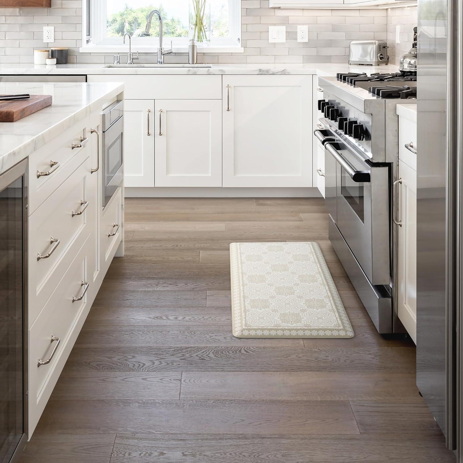 Martha Stewart Comfort Anti Fatigue Strie Medallion Tile Kitchen Mat, Comfort Standing Mat, Non-Slip Backing, Safe Beveled Edge, Grey, 19.6″ x39″(Beige)