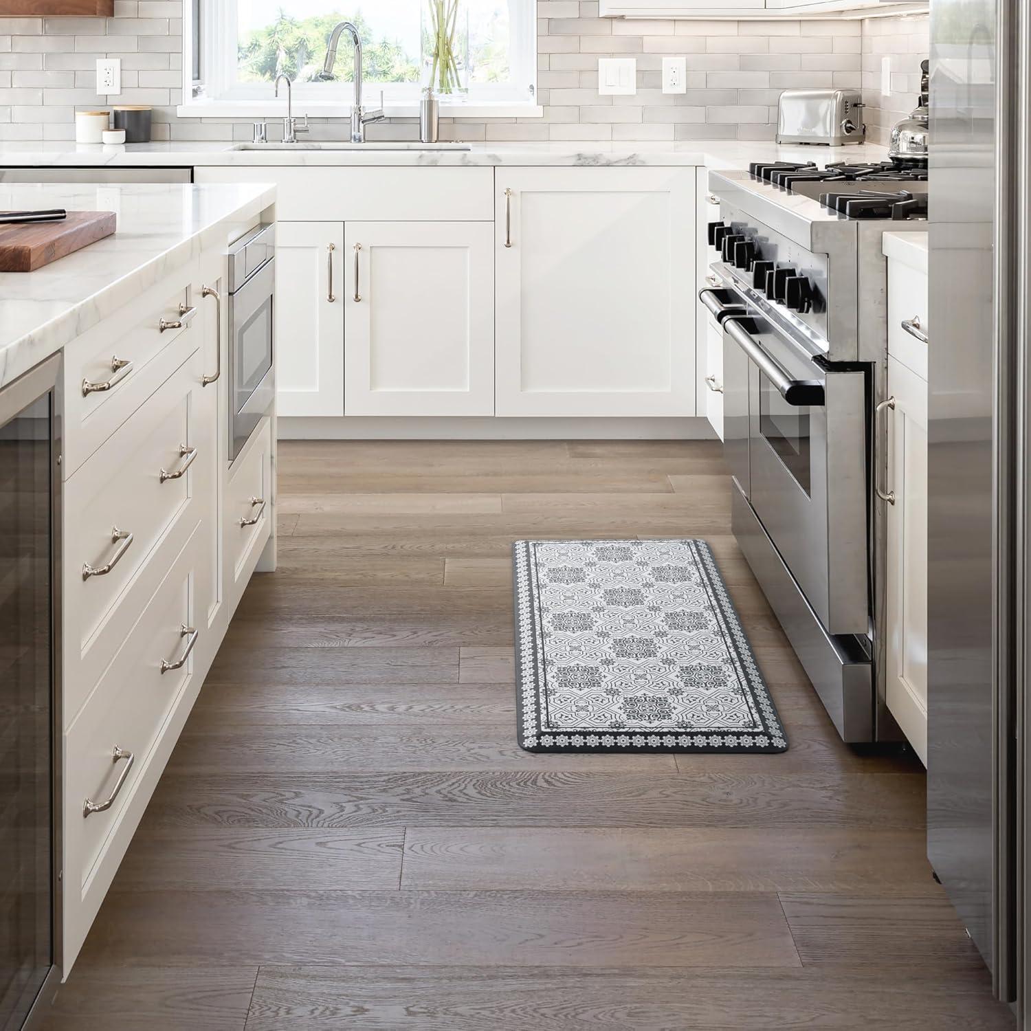 Martha Stewart Comfort Anti Fatigue Strie Medallion Tile Kitchen Mat, Comfort Standing Mat, Non-Slip Backing, Safe Beveled Edge, Grey, 19.6″ x39″(Grey)
