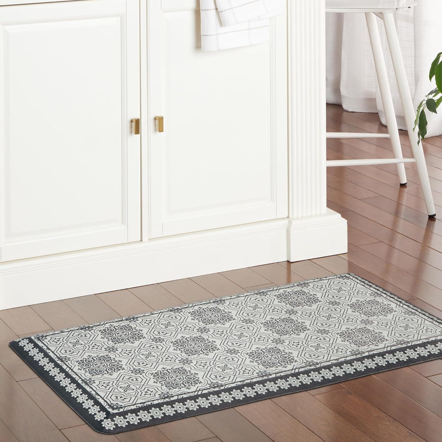 Martha Stewart Comfort Anti Fatigue Strie Medallion Tile Kitchen Mat, Comfort Standing Mat, Non-Slip Backing, Safe Beveled Edge, Grey, 19.6″ x39″(Charcoal Black)