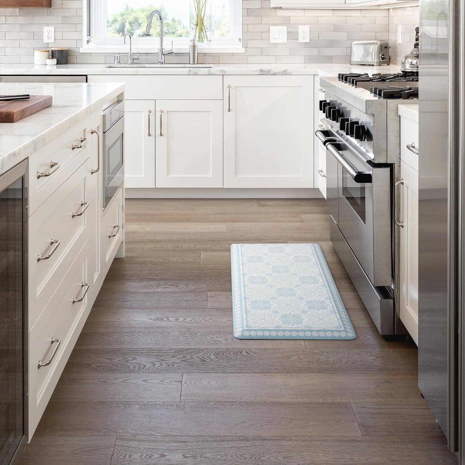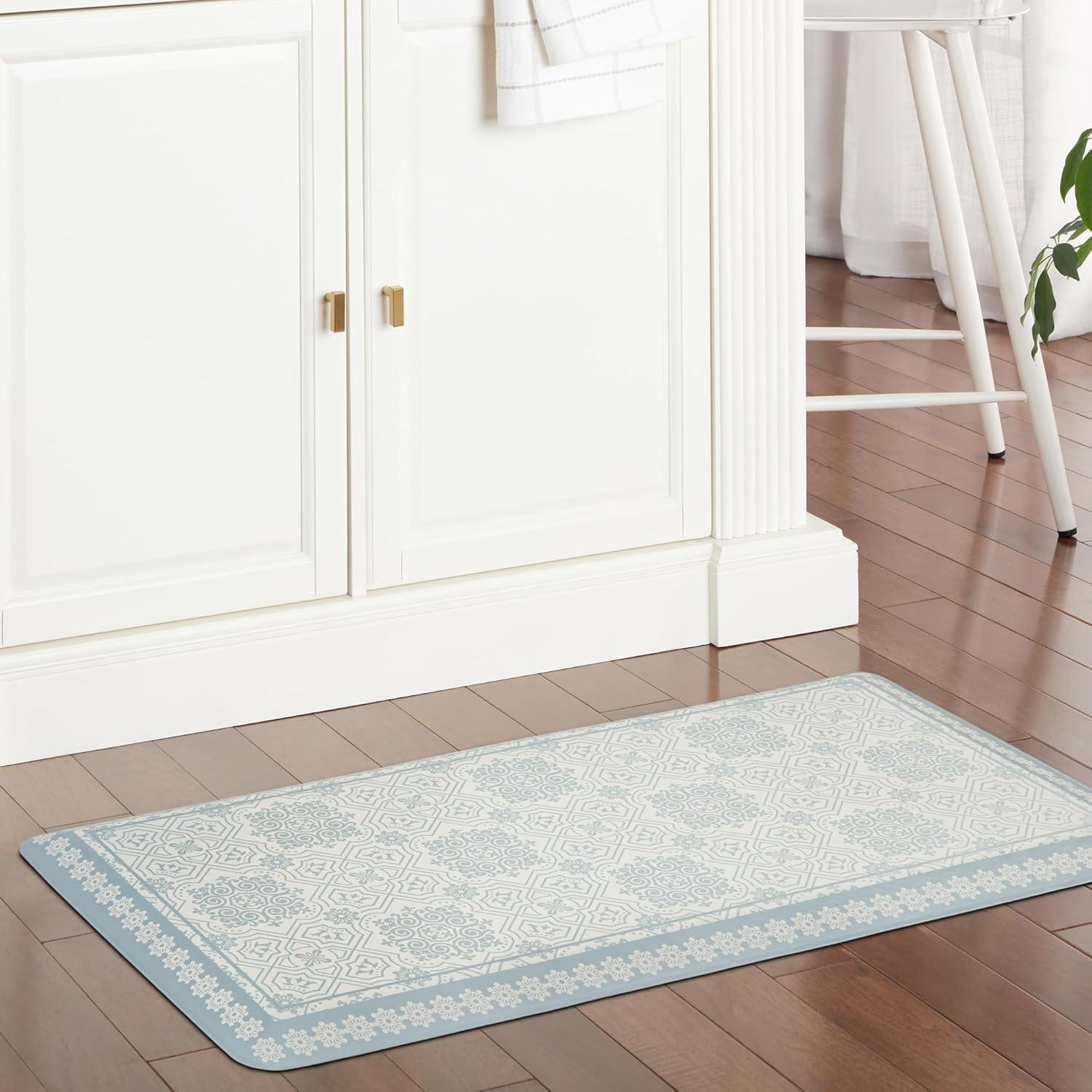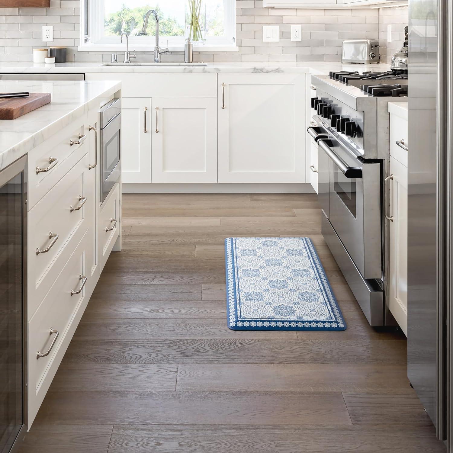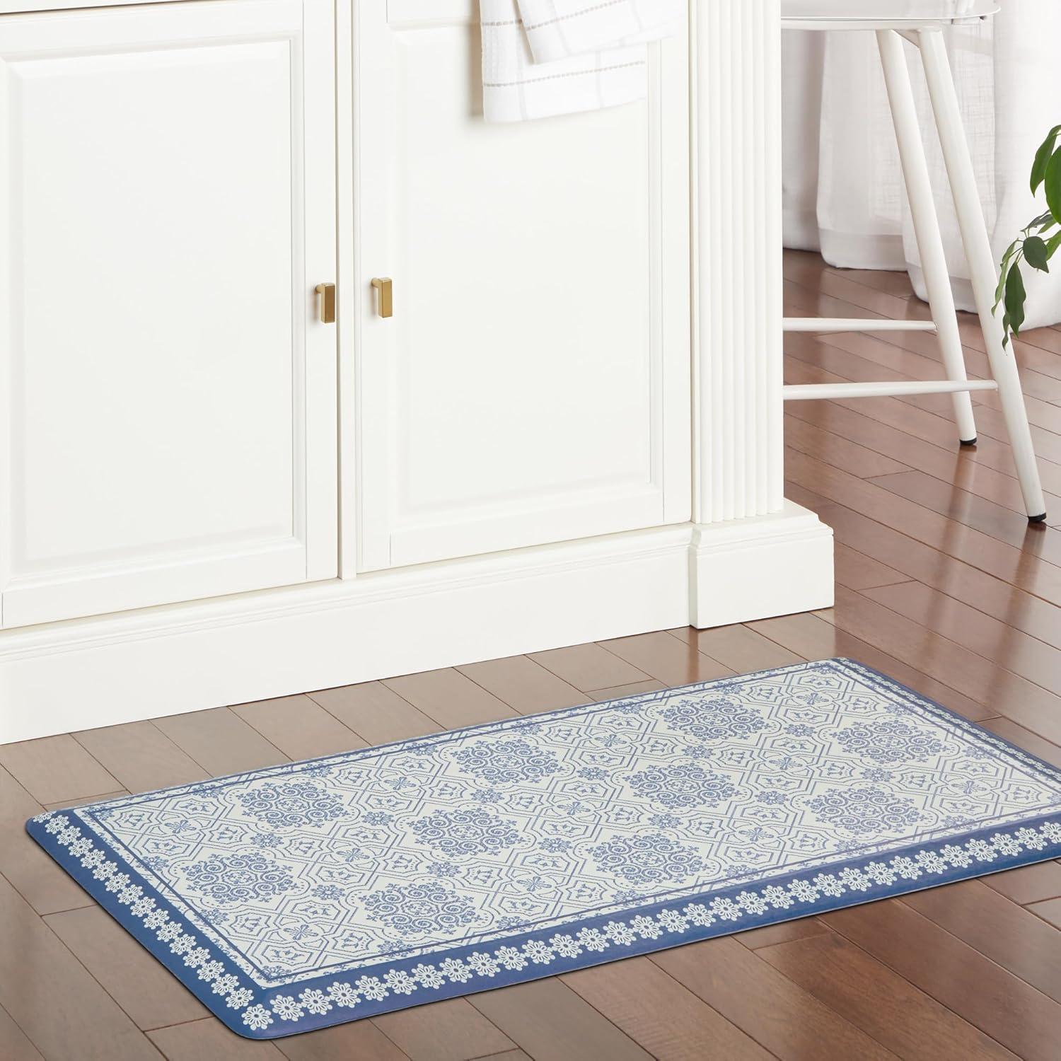 Martha Stewart Comfort Anti Fatigue Strie Medallion Tile Kitchen Mat, Comfort Standing Mat, Non-Slip Backing, Safe Beveled Edge, Grey, 19.6″ x39″(Navy Blue)
