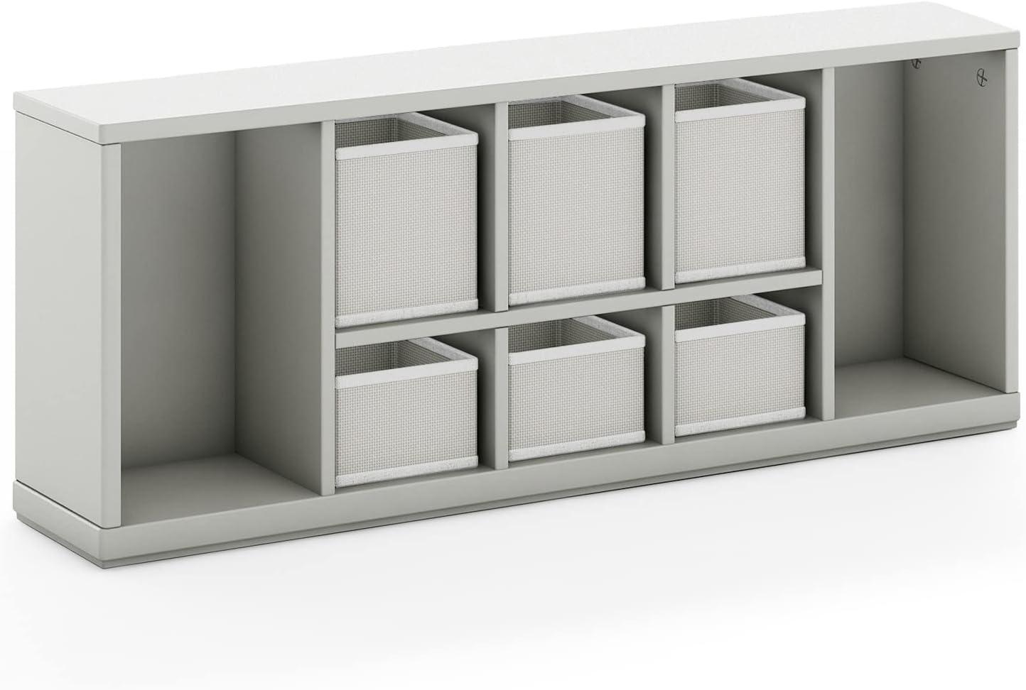 Martha Stewart Crafting Kids’ Cubby Organizer – Linen White: Wooden Tabletop Art Storage with Removable Bins – Cube Shelving(Gray)