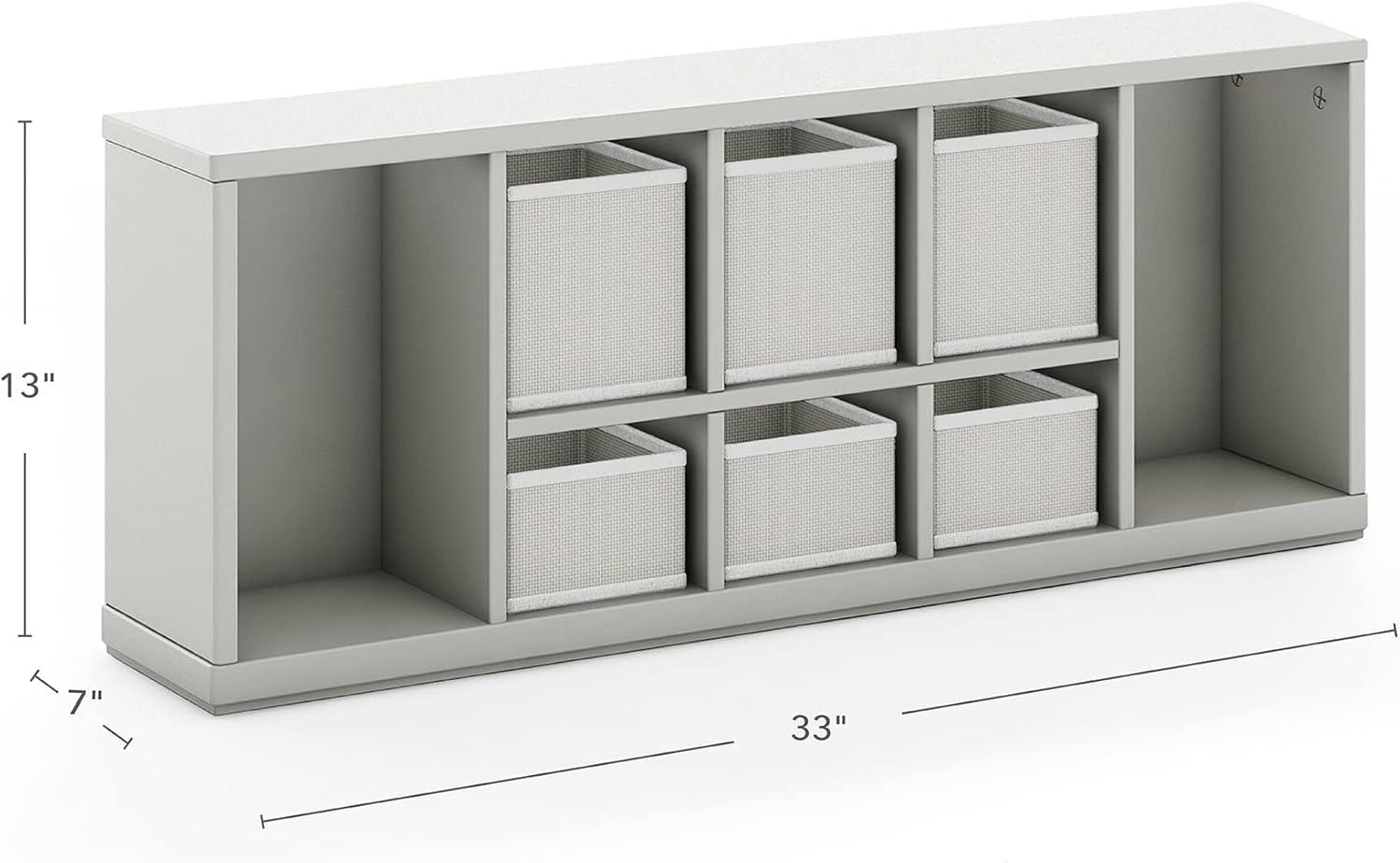 Martha Stewart Crafting Kids’ Open Storage – Gray: Wooden Shelving with Bins for Art Supplies, Single-Sided Organization with Compartments(Linen White)