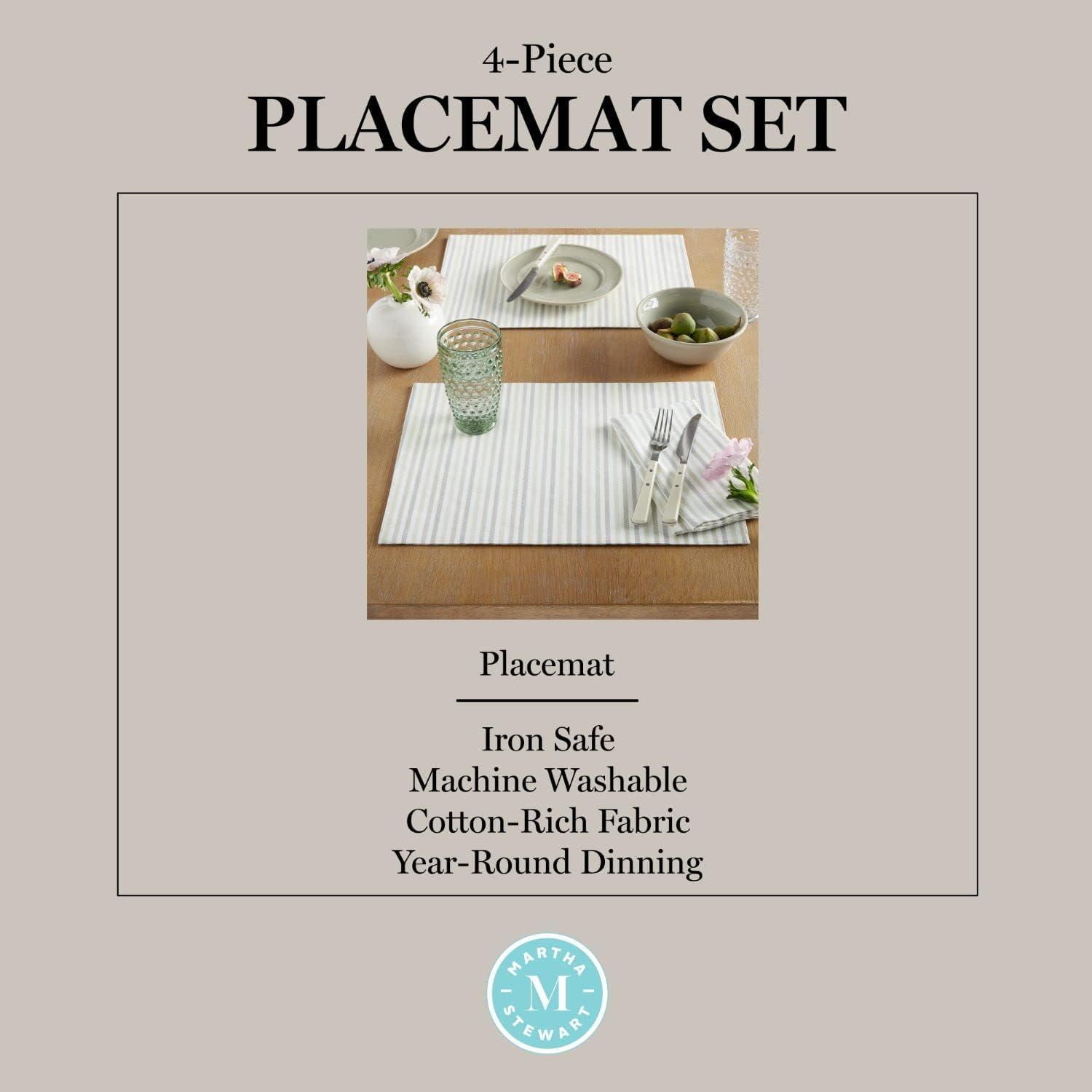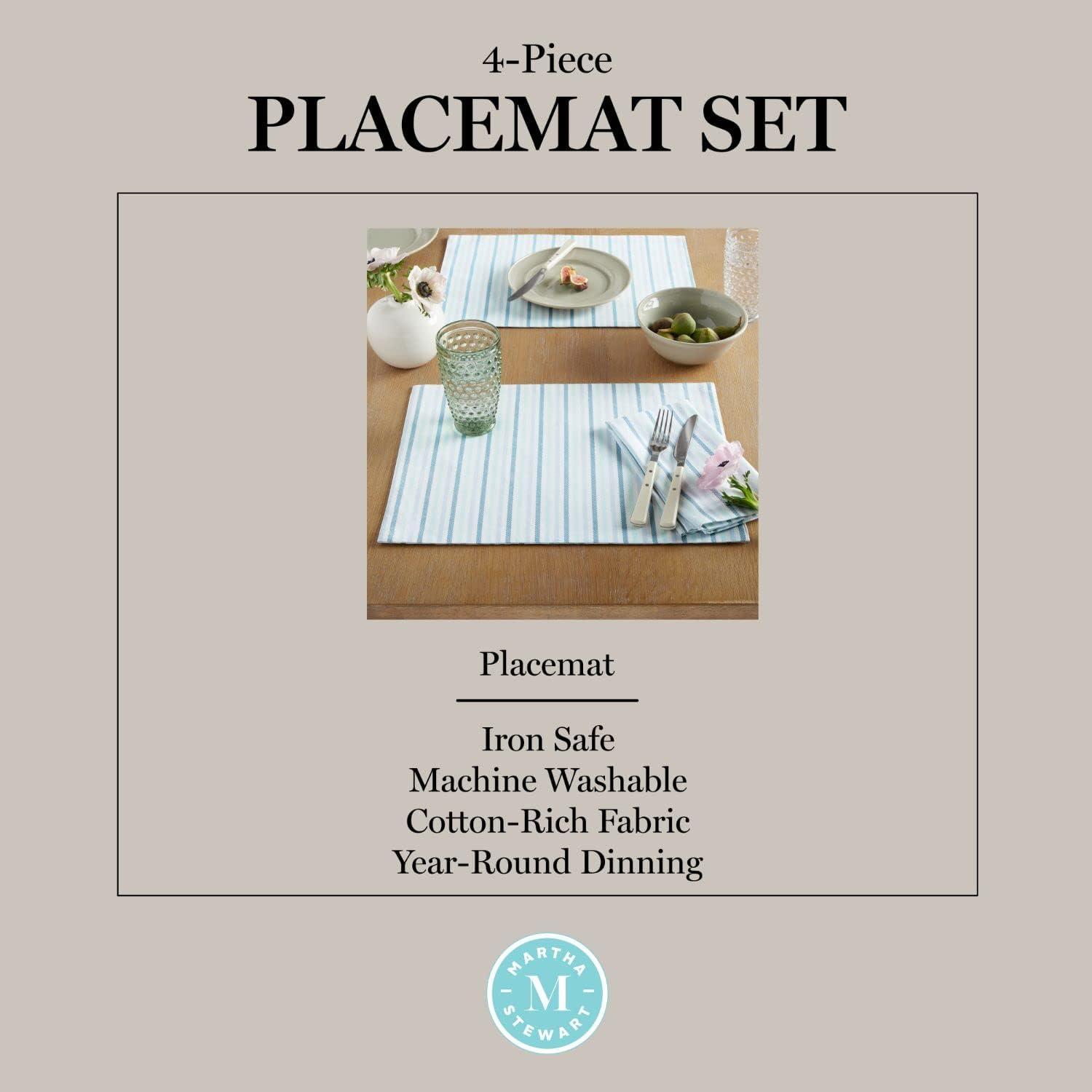 Martha Stewart Daisy Stripe Placemat Set 4-Pack, Beige/Brown, 13″x17.5″(Blue)