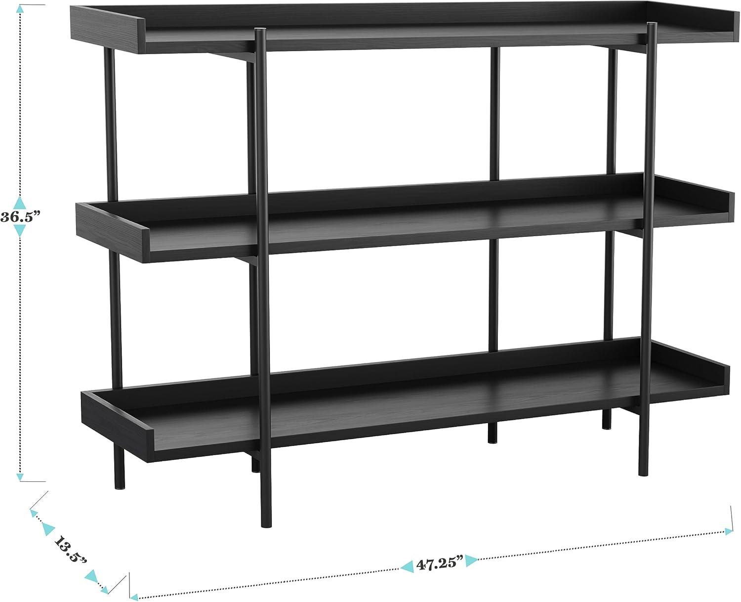 Martha Stewart Emmett 3 Shelf Bookcase with Vertical Metal Frame, Home Office Storage Display Unit, 35″ H, Walnut Wood Grain/Polished Brass(Black Wood Grain/Oil Rubbed Bronze Frame)