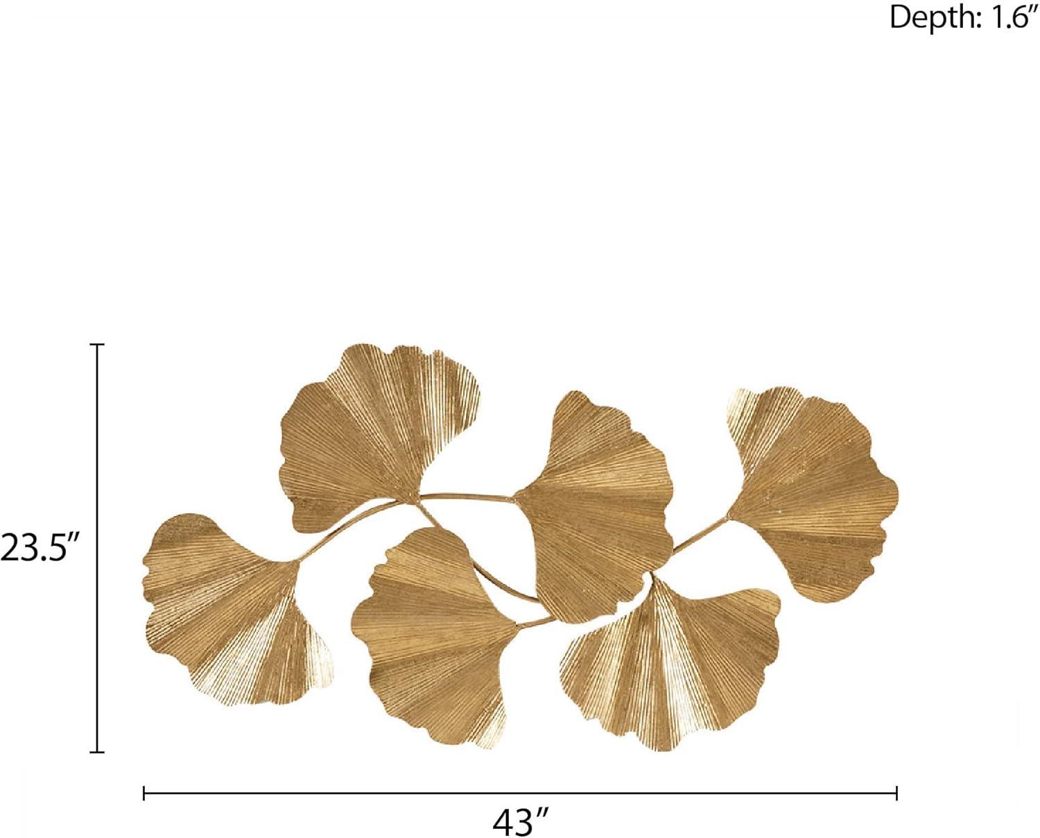 This metal wall sculpture features a ginkgo leaf design with a gold foil finish for a luxurious transitional look