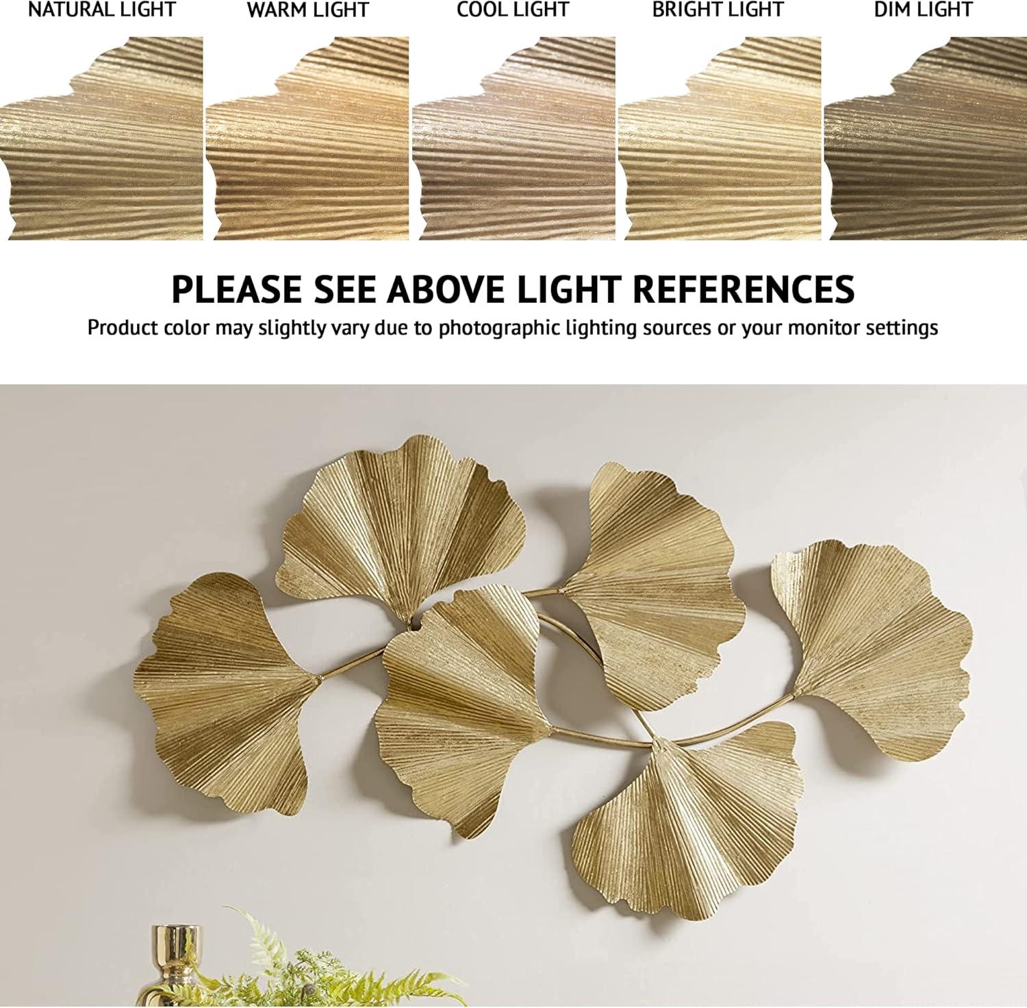 Madison Park Wall Art Living Room Décor Faye Metal Foil Ginkgo Leaf Large Home Accent Modern Inspired Dining, Bathroom Decoration Ready to Hang Ornament for Bedroom, 43″ W x 23.5″ H x 1.6″ D, Gold