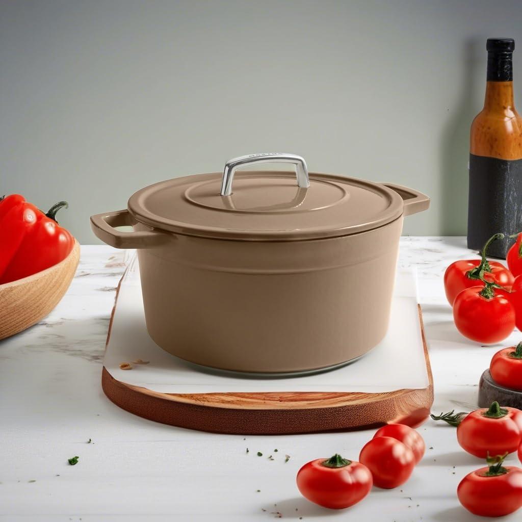 Martha Stewart Signature 5 QT Enameled Cast Iron Dutch Oven w/ Lid – Taupe