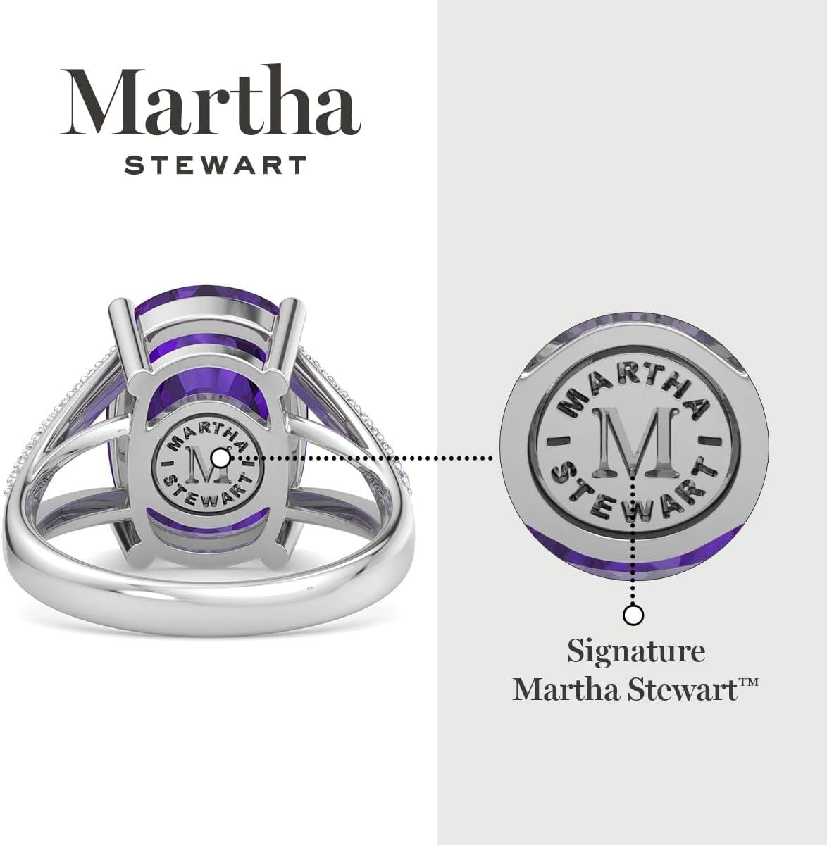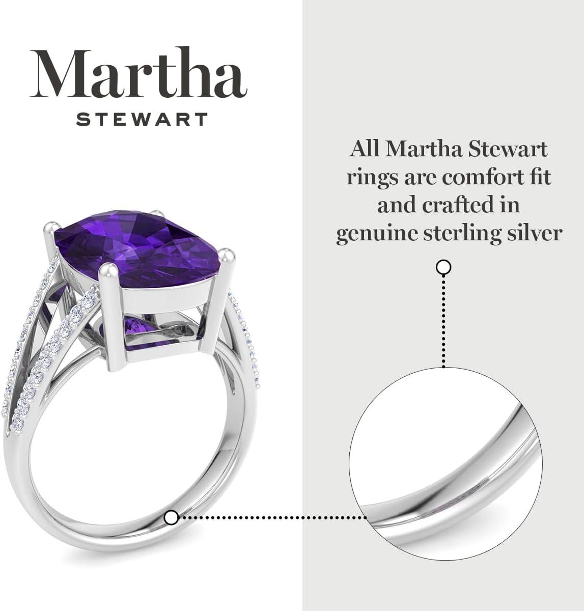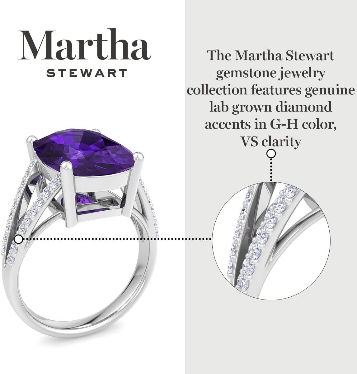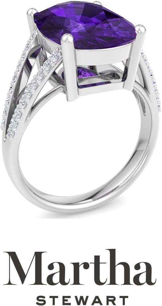 Martha Stewart 10 1/4 Carat Cushion Cut Gemstone Ring with Lab Grown Diamonds in Sterling Silver, Choose Your Gemstone(Amethyst)