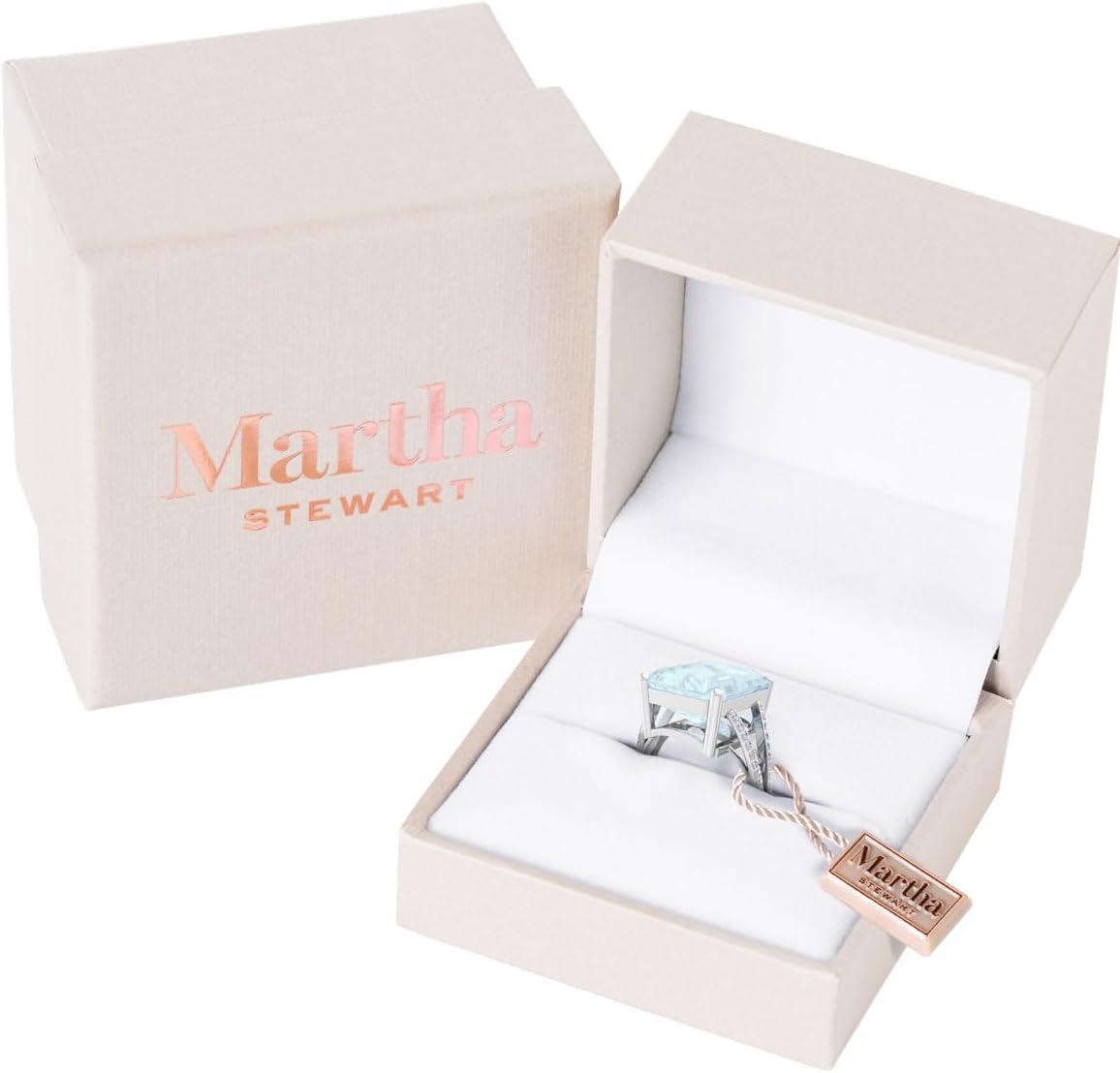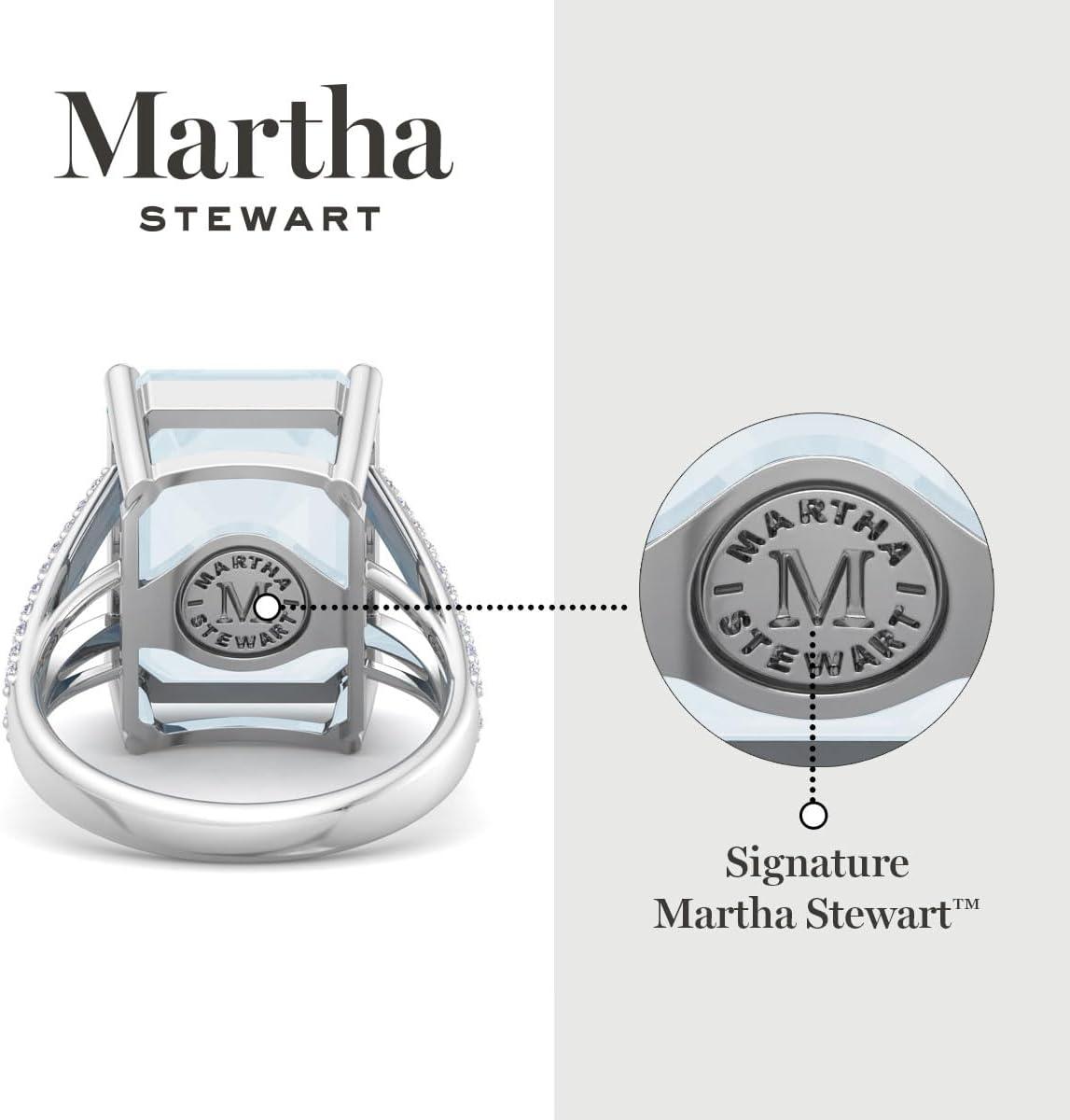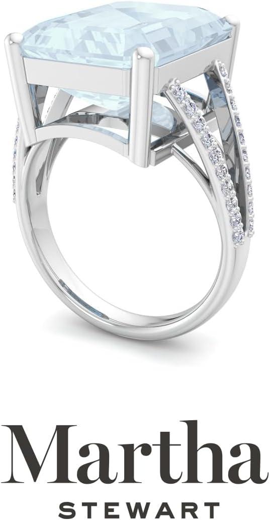 Martha Stewart 10 1/4 Carat Emerald Cut Gemstone Ring with Lab Grown Diamonds in Sterling Silver, Choose Your Gemstone(Aquamarine)