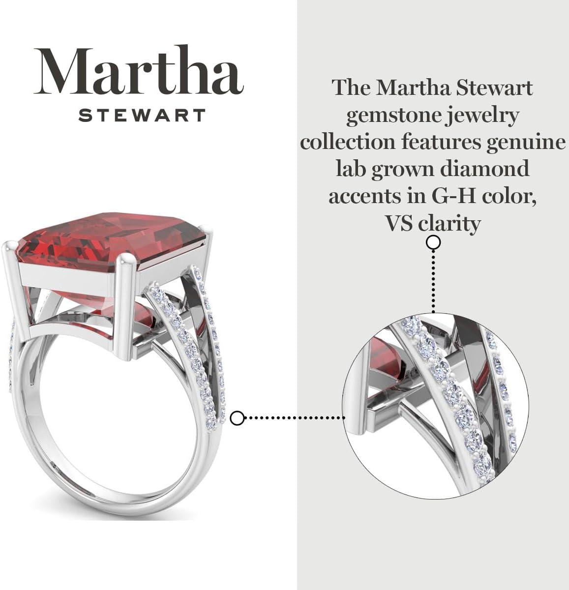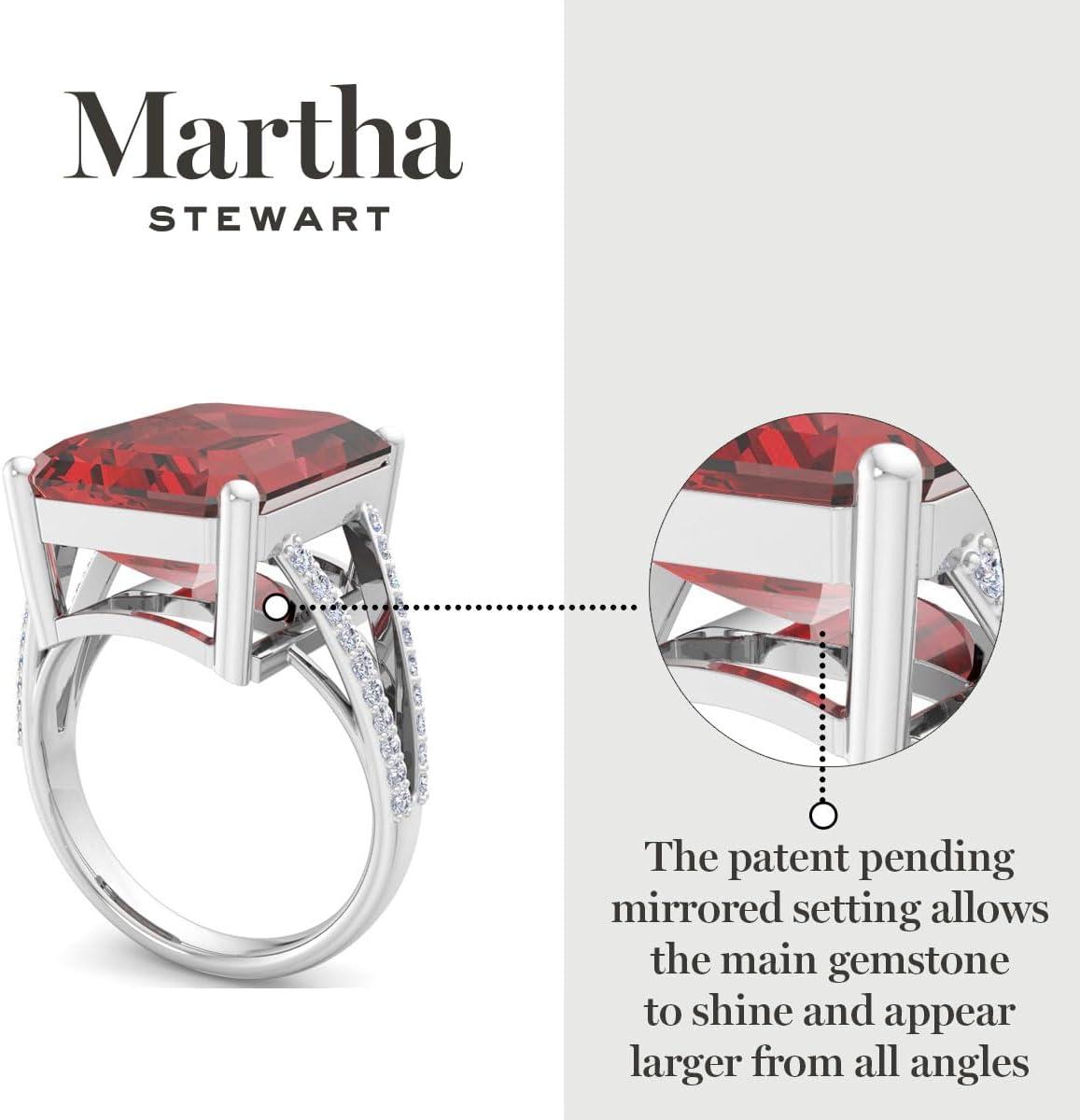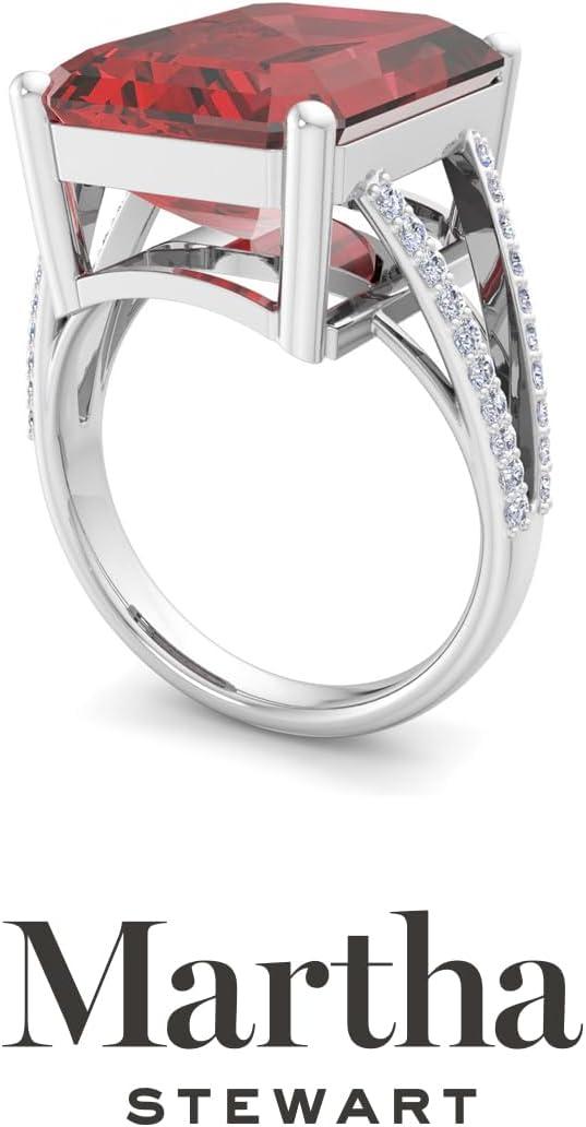 Martha Stewart 10 1/4 Carat Emerald Cut Gemstone Ring with Lab Grown Diamonds in Sterling Silver, Choose Your Gemstone(Garnet)