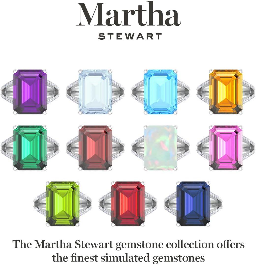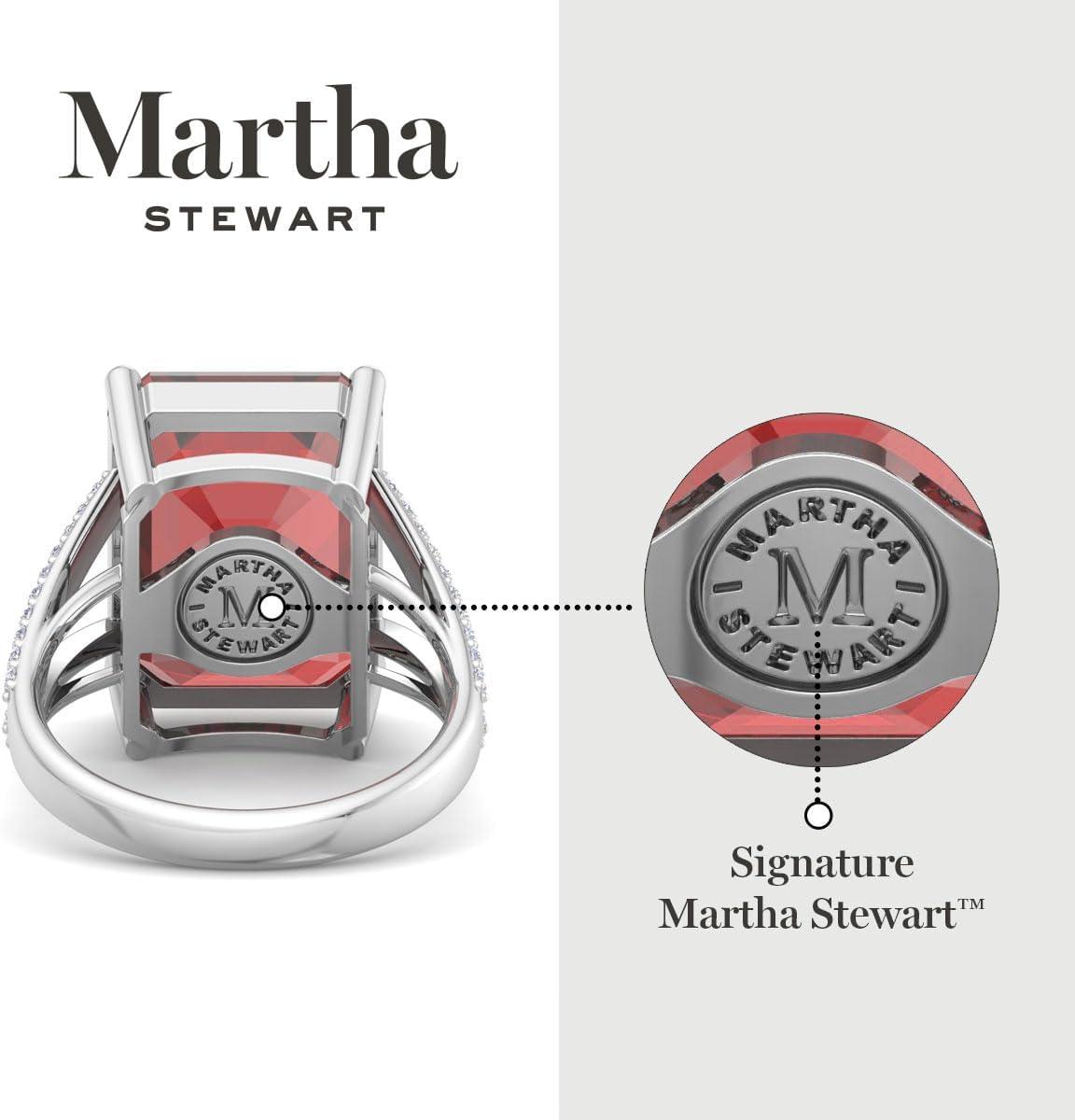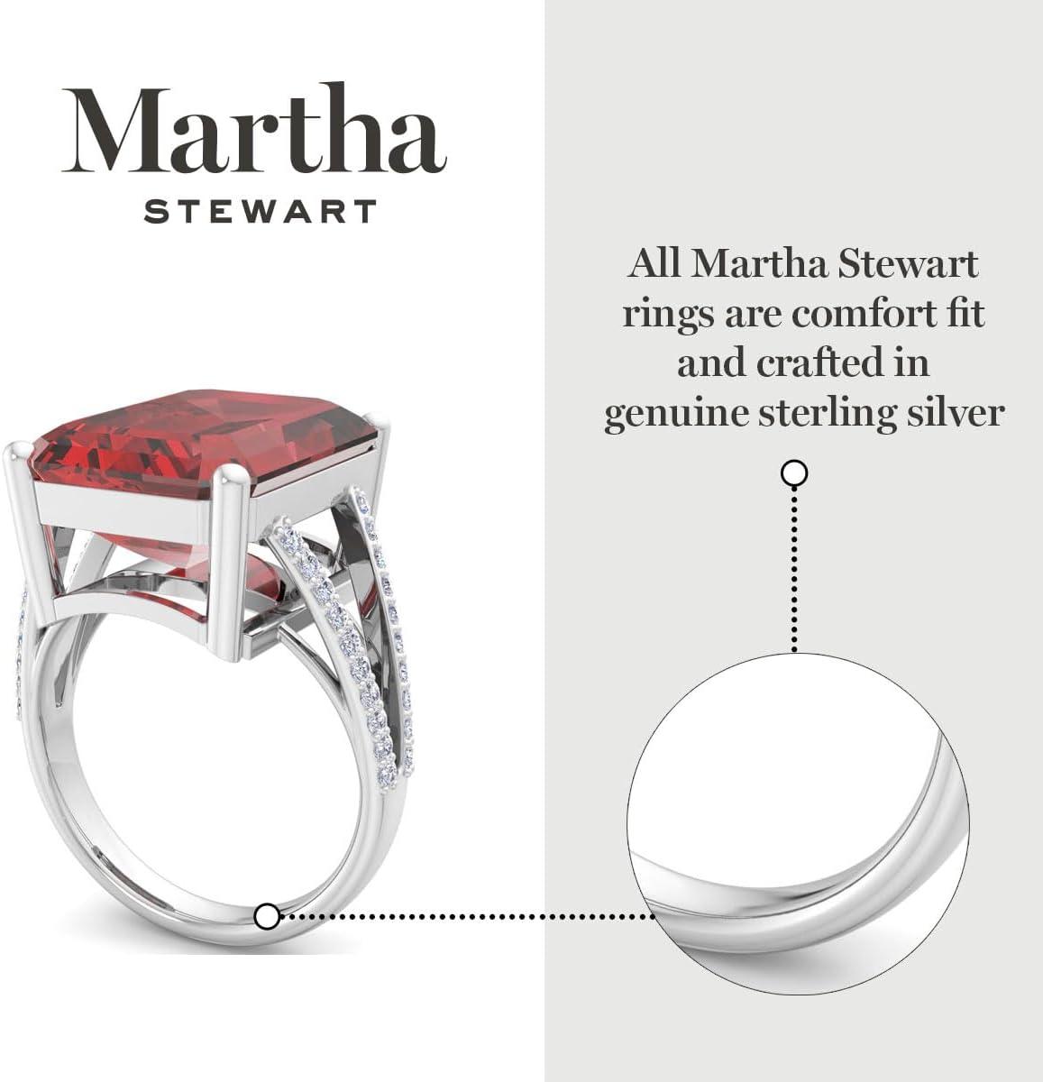 Martha Stewart 10 1/4 Carat Emerald Cut Gemstone Ring with Lab Grown Diamonds in Sterling Silver, Choose Your Gemstone(Garnet)