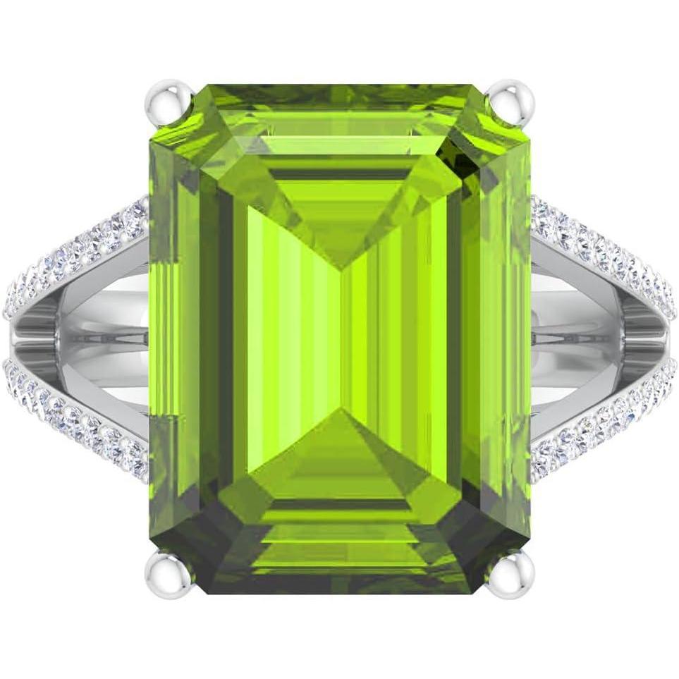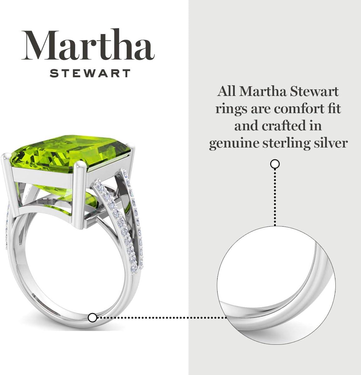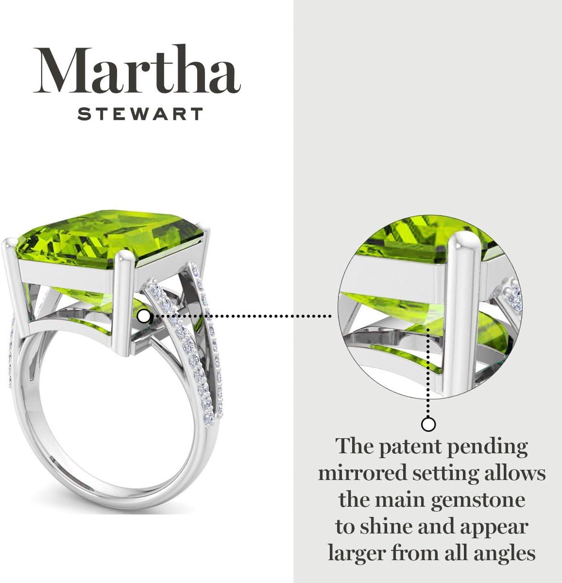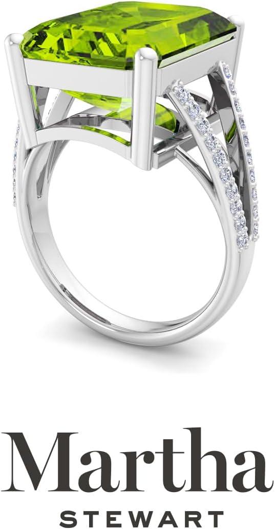 Martha Stewart 10 1/4 Carat Emerald Cut Gemstone Ring with Lab Grown Diamonds in Sterling Silver, Choose Your Gemstone(Peridot)