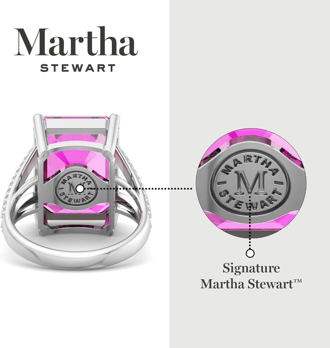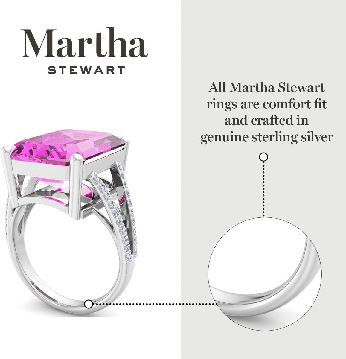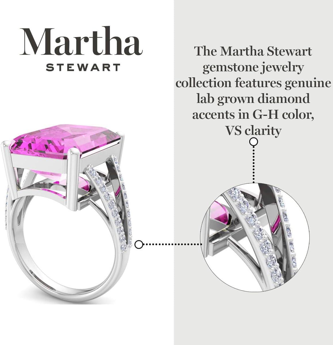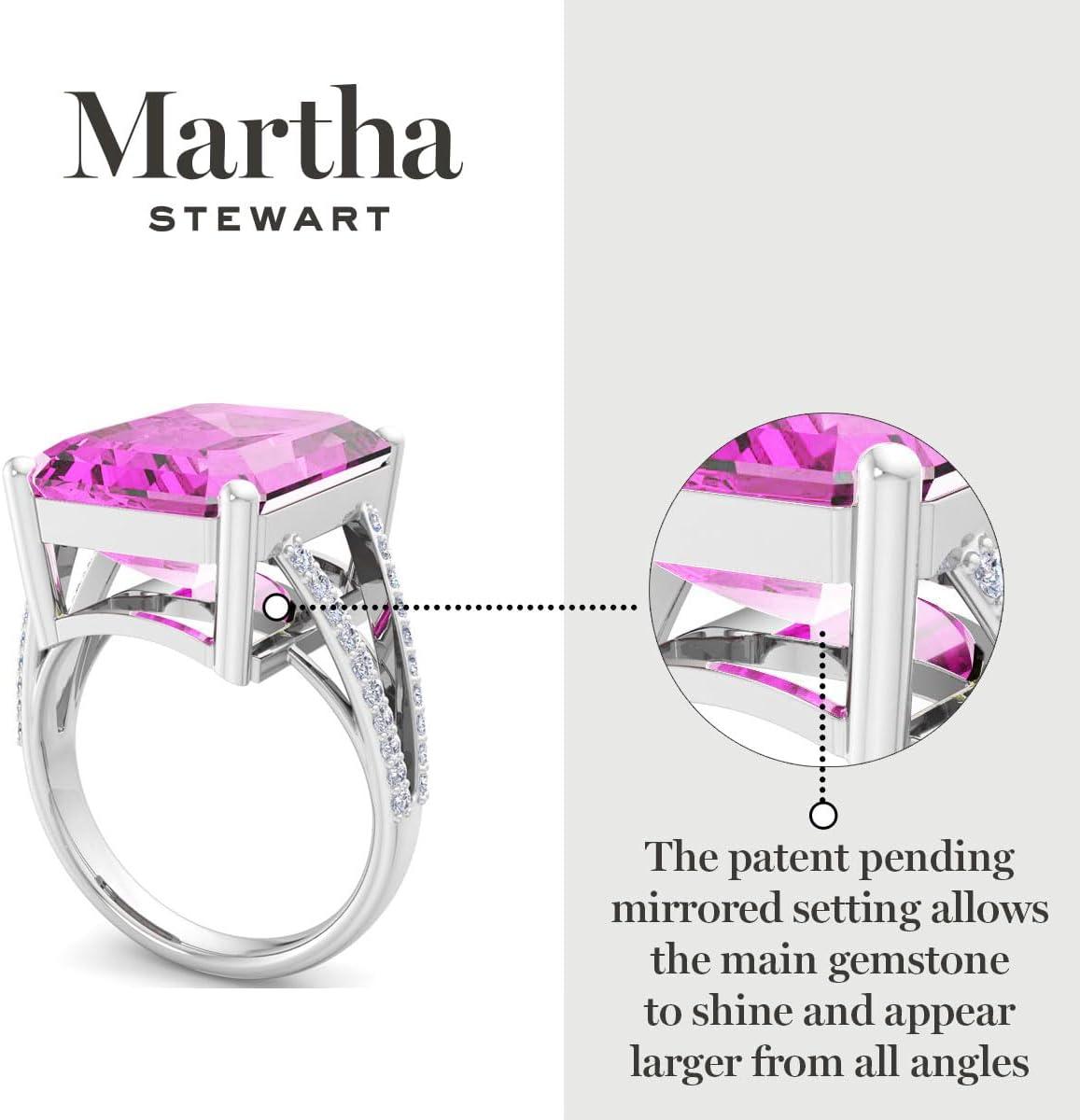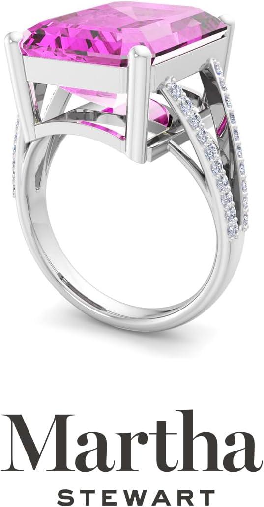 Martha Stewart 10 1/4 Carat Emerald Cut Gemstone Ring with Lab Grown Diamonds in Sterling Silver, Choose Your Gemstone(Pink Sapphire)