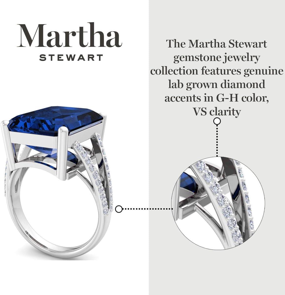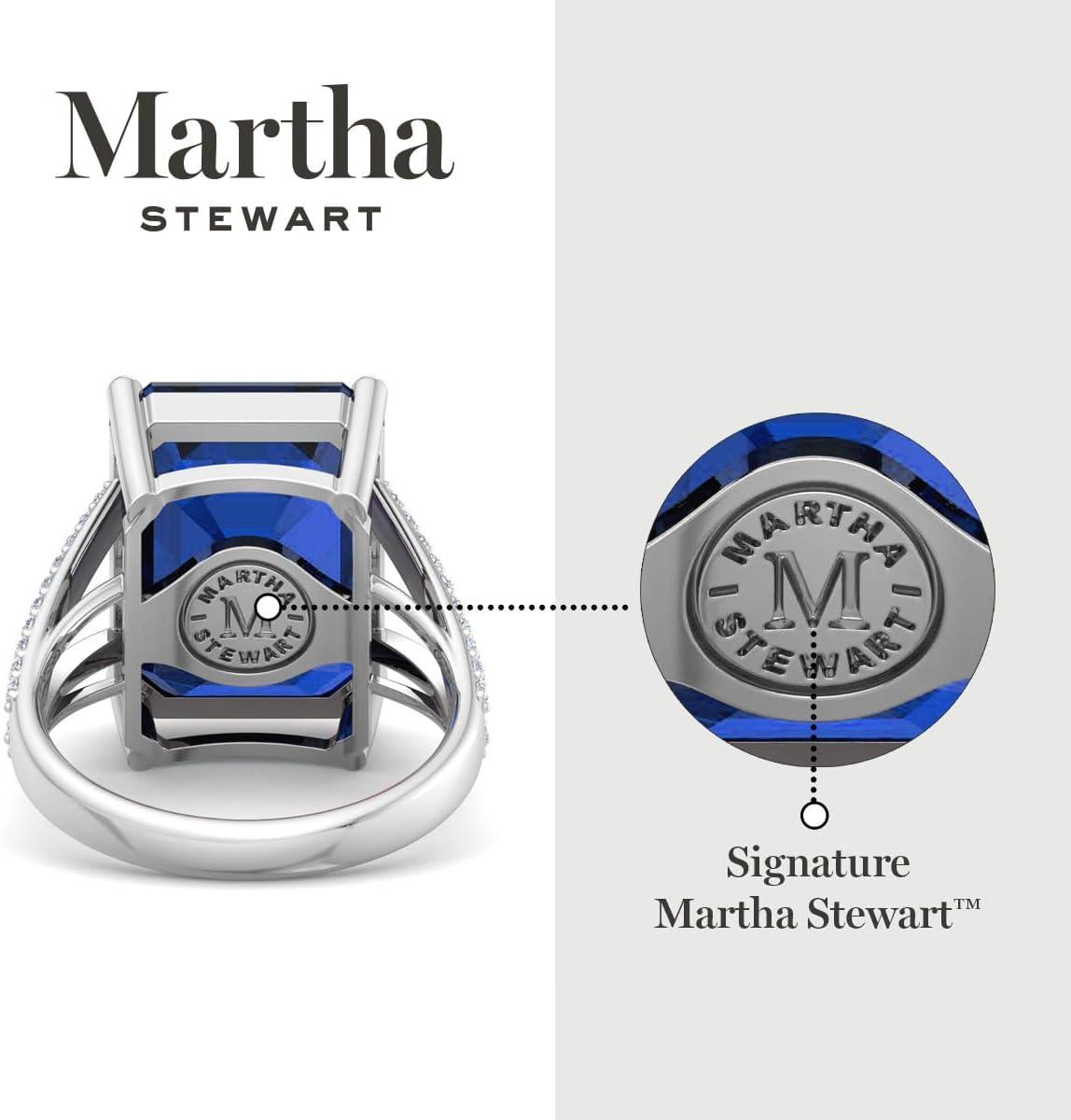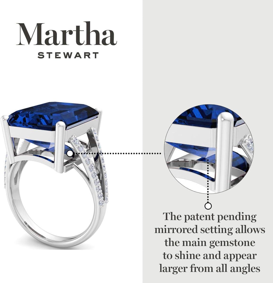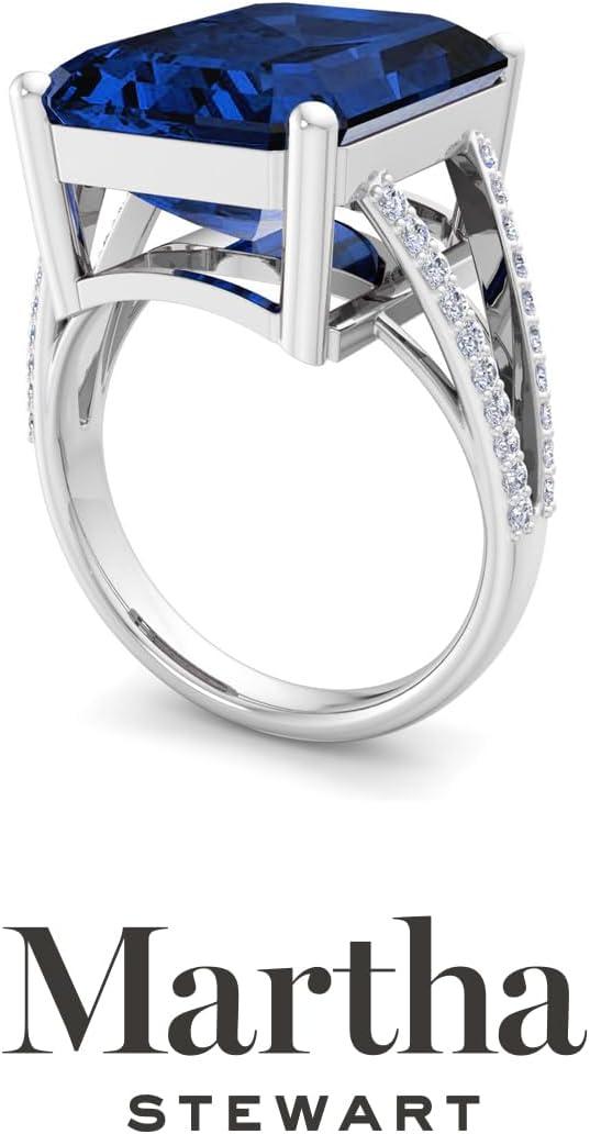 Martha Stewart 10 1/4 Carat Emerald Cut Gemstone Ring with Lab Grown Diamonds in Sterling Silver, Choose Your Gemstone(Sapphire)