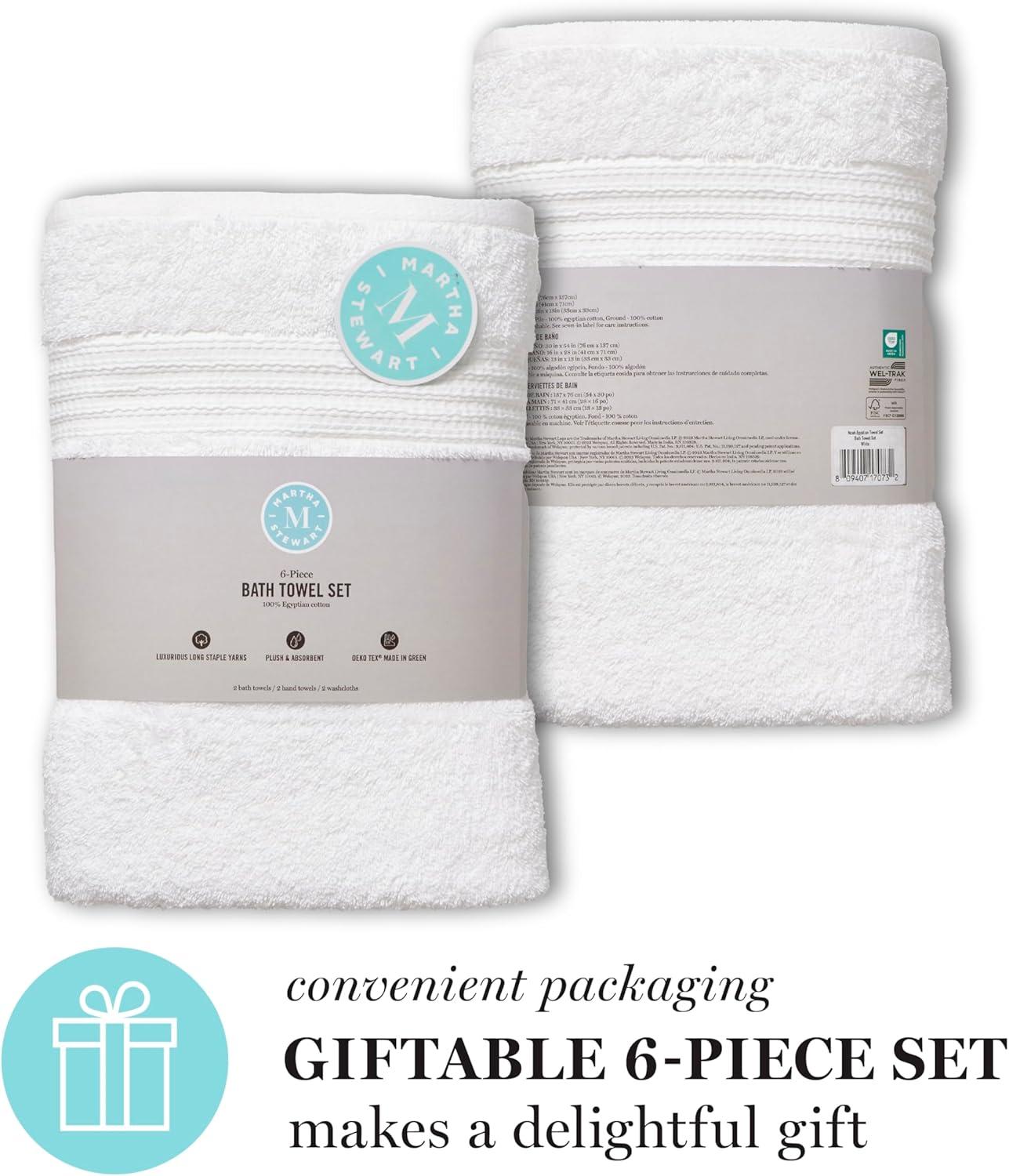 MARTHA STEWART 100% Cotton Bath Towels Set Of 6 Piece, 2 Bath Towels, 2 Hand Towels, 2 Washcloths, Quick Dry Towels, Soft & Absorbent, Bathroom Essentials, Light Gray(New White)