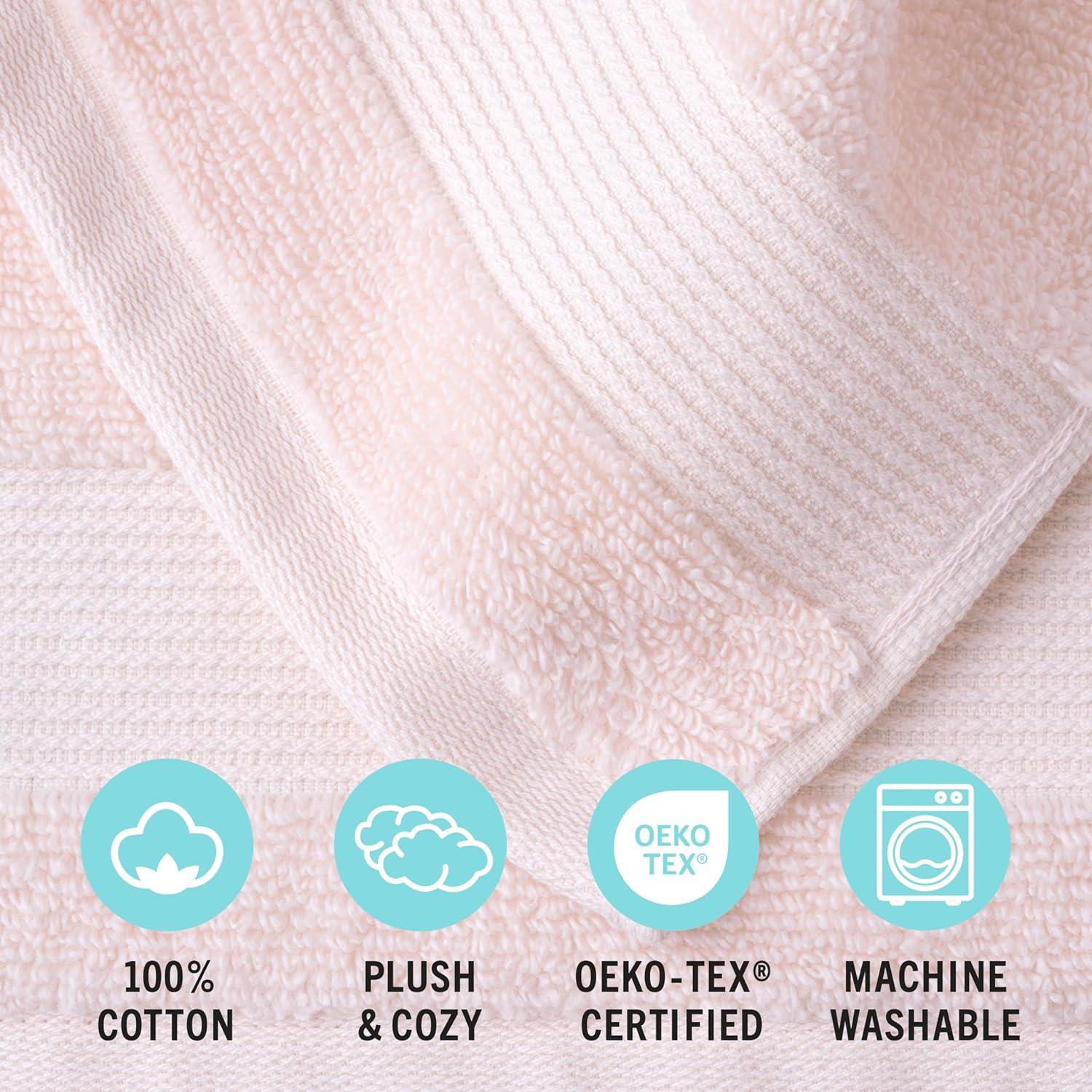 MARTHA STEWART 100% Cotton Bath Towels Set Of 6 Piece, 2 Bath Towels, 2 Hand Towels, 2 Washcloths, Quick Dry Towels, Soft & Absorbent, Bathroom Essentials, Light Gray(X Blush Pink)