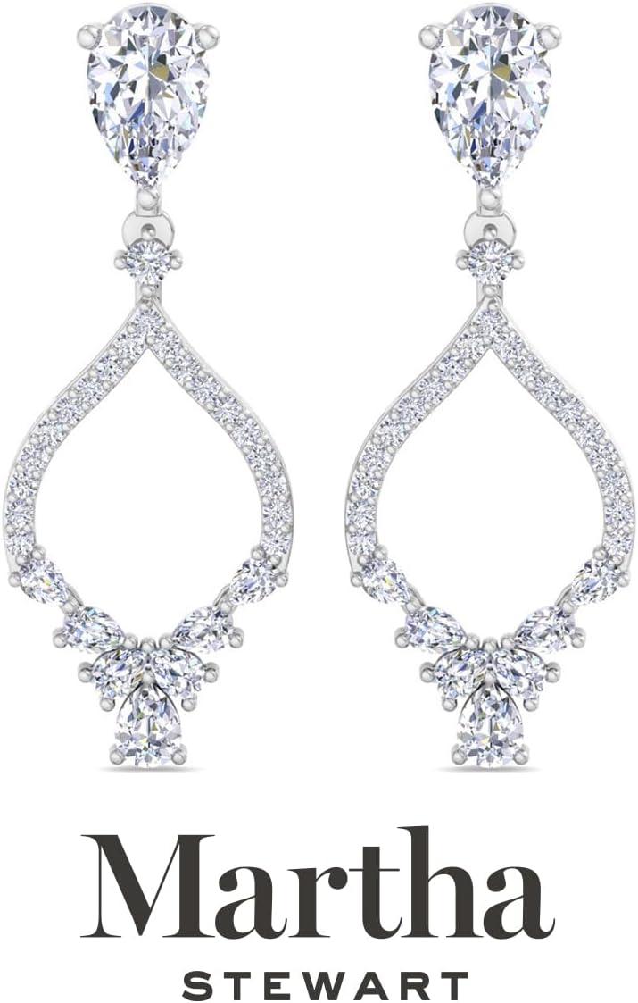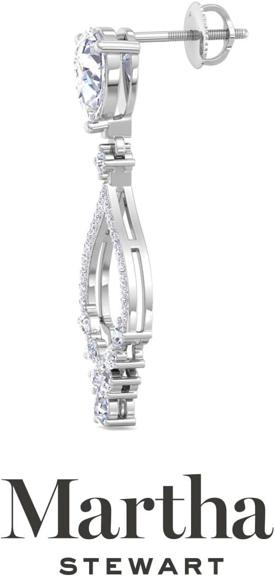 Showcasing class, style and timeless sophistication, the Martha Stewart fine jewelry collection is here to be celebrated. These Martha Stewart lab grown diamond earrings feature 50 round shape lab grown diamonds in G-H color, VS clarity and two 1 carat oval shape lab grown diamonds. Total carat weight is 2 1/2 carats. These earrings are available in 14 karat white and yellow gold and have post with friction backs. These earrings dangle down 1 inch! Whether worn for a special event or to enhance everyday elegance, these earrings are sure to become cherished heirlooms. Martha Stewart’s attention to detail and dedication to quality shine through in every piece, making this collection a celebration of refined craftsmanship and timeless beauty.