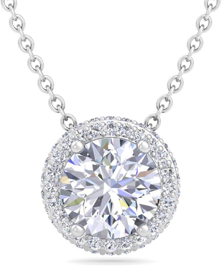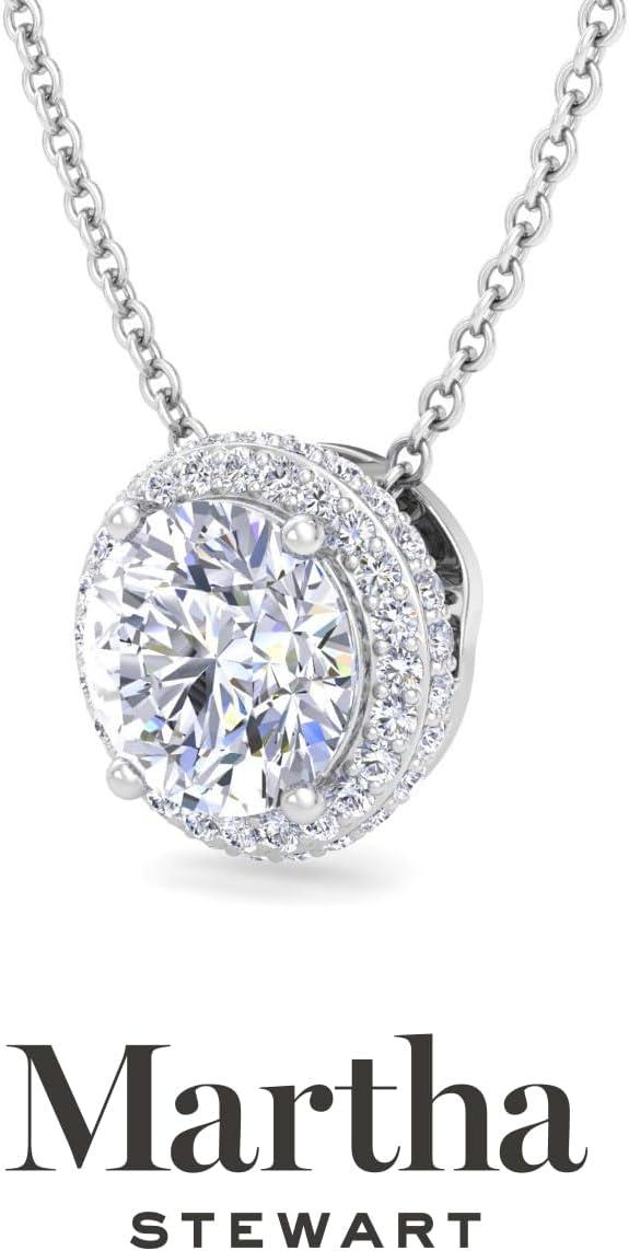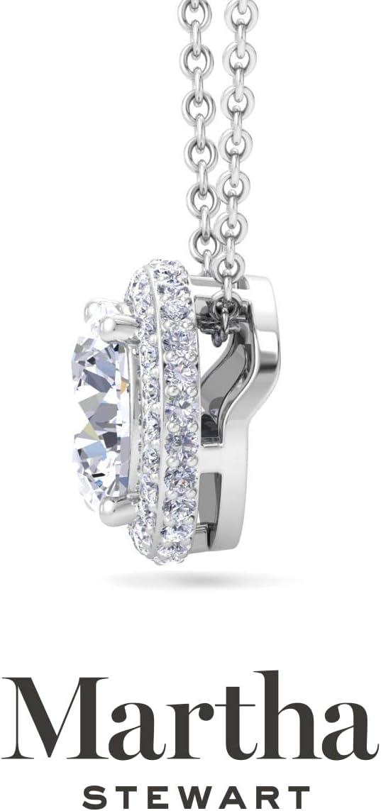 Martha Stewart 2 1/4 Carat Lab Grown Diamond Halo Necklace In 14 Karat Gold, Lab Grown Diamond Necklace For Women(white-gold)