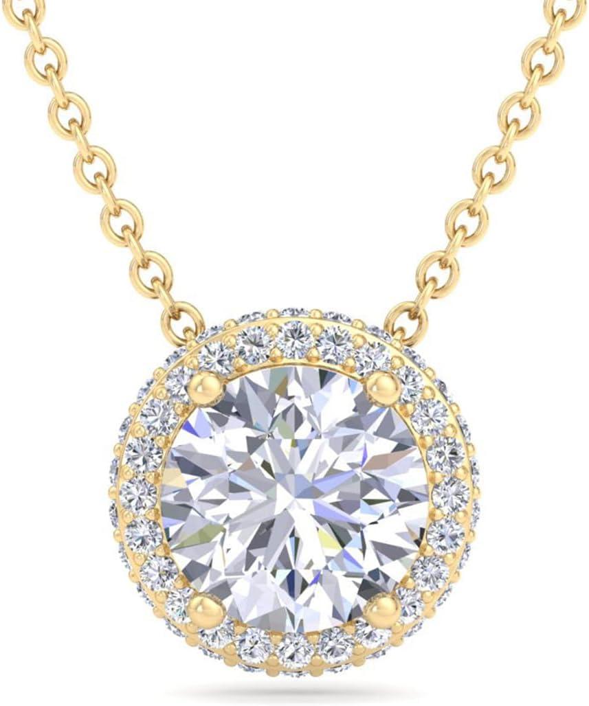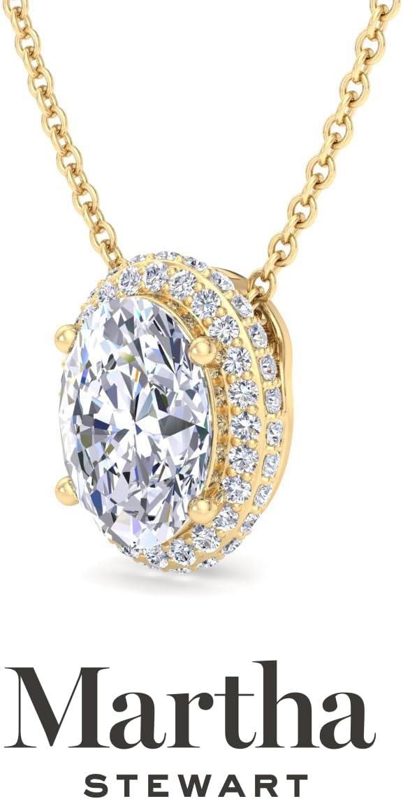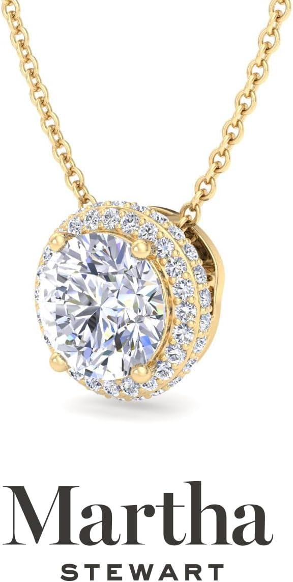 Martha Stewart 2 1/4 Carat Lab Grown Diamond Halo Necklace In 14 Karat Gold, Lab Grown Diamond Necklace For Women(yellow-gold)