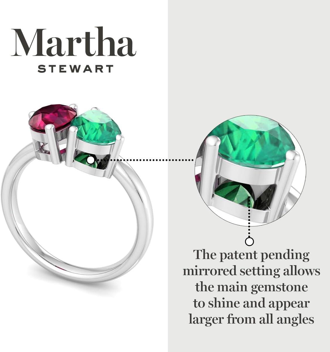 Martha Stewart 2 Carat Two Stone Gemstone Ring For Women in Sterling Silver, Gemstone Jewelry For Women(Option 2)
