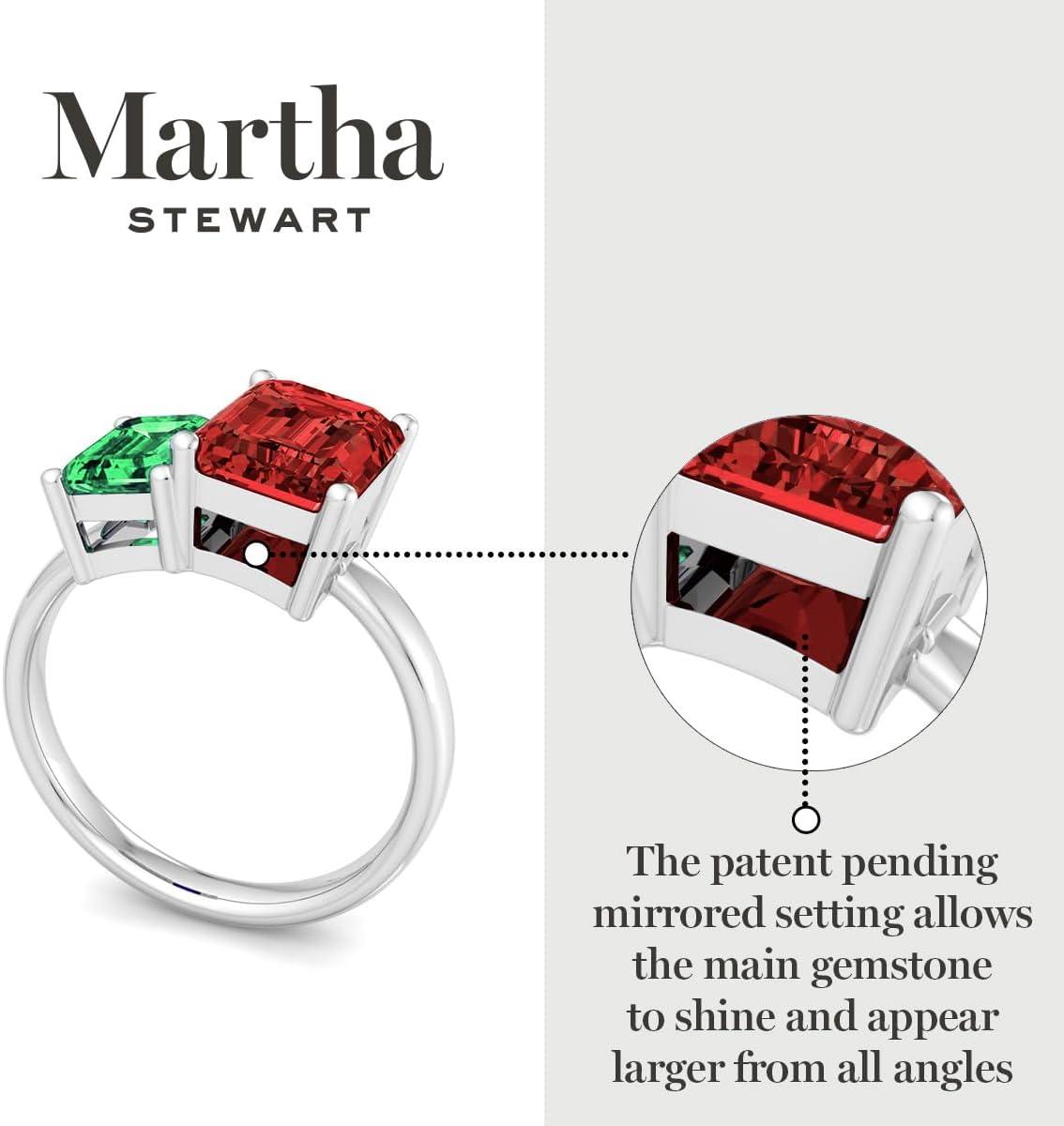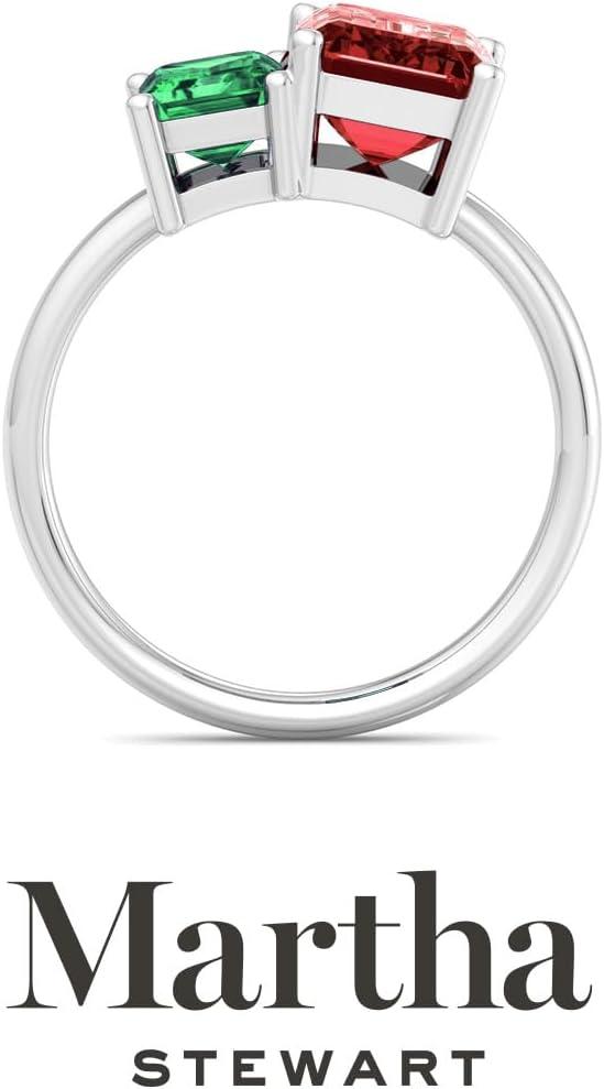 Martha Stewart 3 1/4 Carat Two Stone Gemstone Ring For Women in Sterling Silver, Gemstone Jewelry For Women(Option 7)
