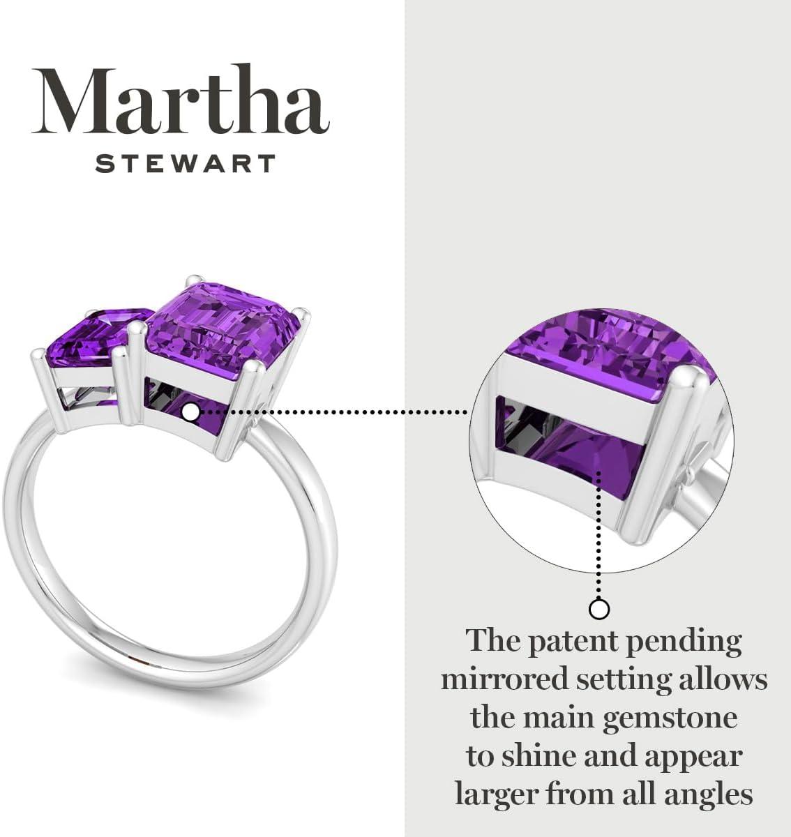 Martha Stewart 3 1/4 Carat Two Stone Gemstone Ring For Women in Sterling Silver, Gemstone Jewelry For Women(Option 8)