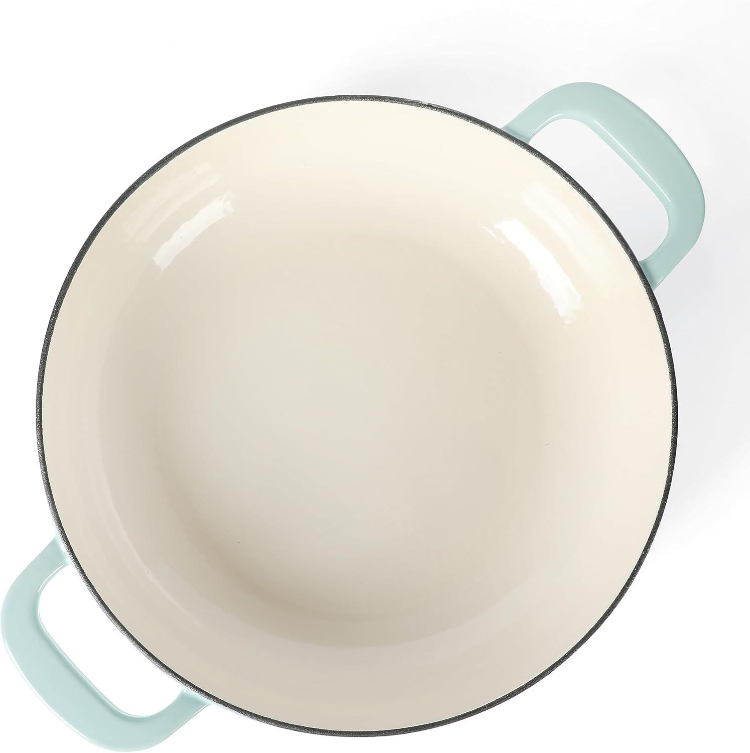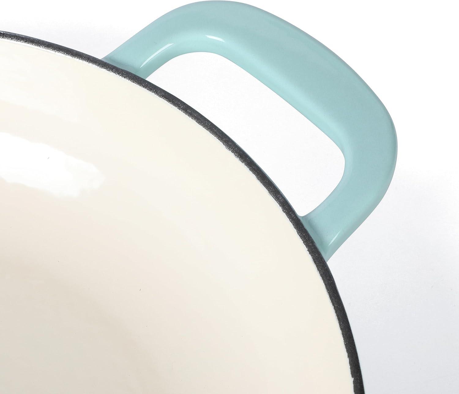 Martha Stewart 3.5-Quart Enameled Cast Iron Dutch Oven Braiser – Linen w/Gold Knob(Martha Blue w/ Gold Knob (Braiser))