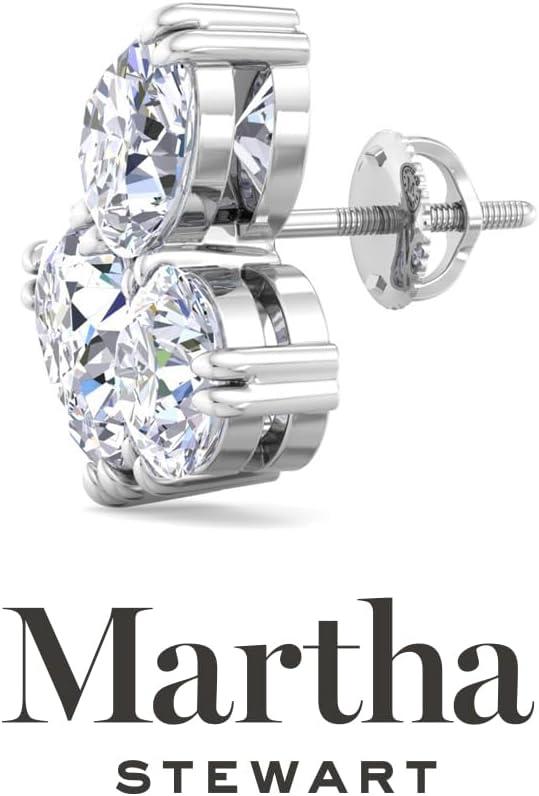 Martha Stewart 3 Carat Lab Grown Diamond Cluster Stud Earrings, Pear, Round, Oval Shapes in 14K Gold(white-gold)