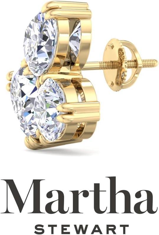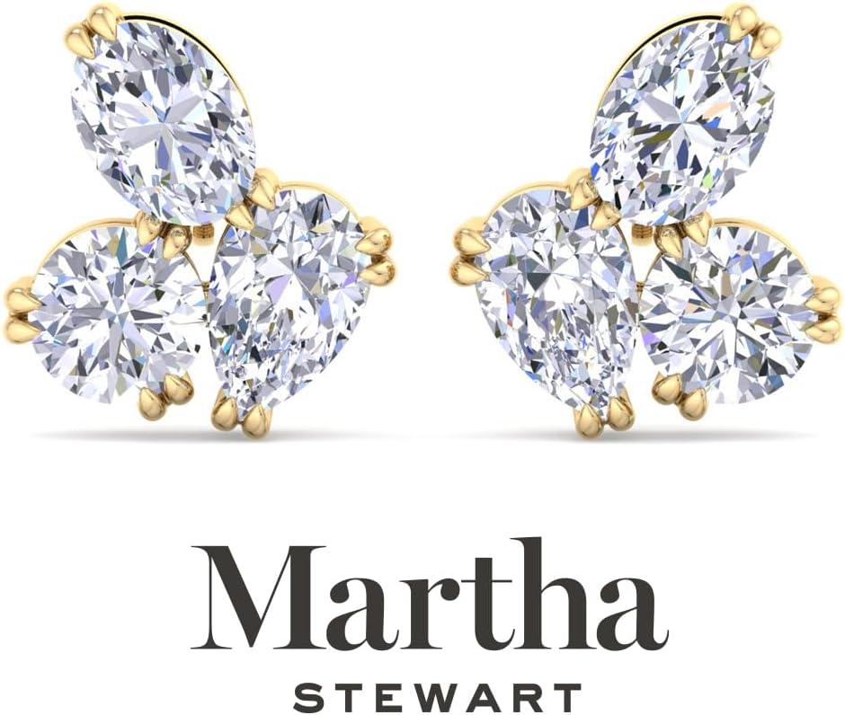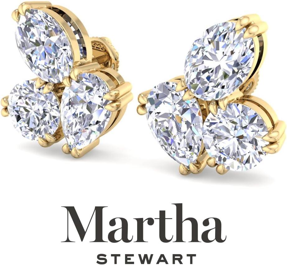 Martha Stewart 3 Carat Lab Grown Diamond Cluster Stud Earrings, Pear, Round, Oval Shapes in 14K Gold(yellow-gold)