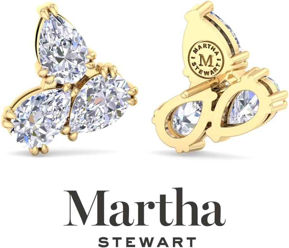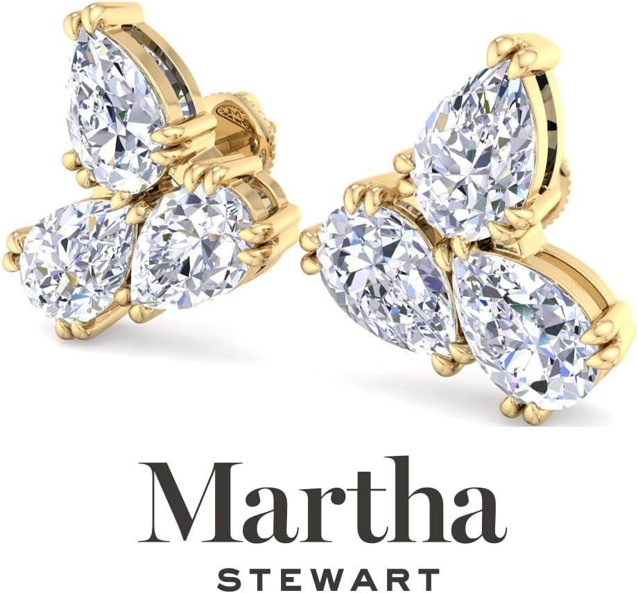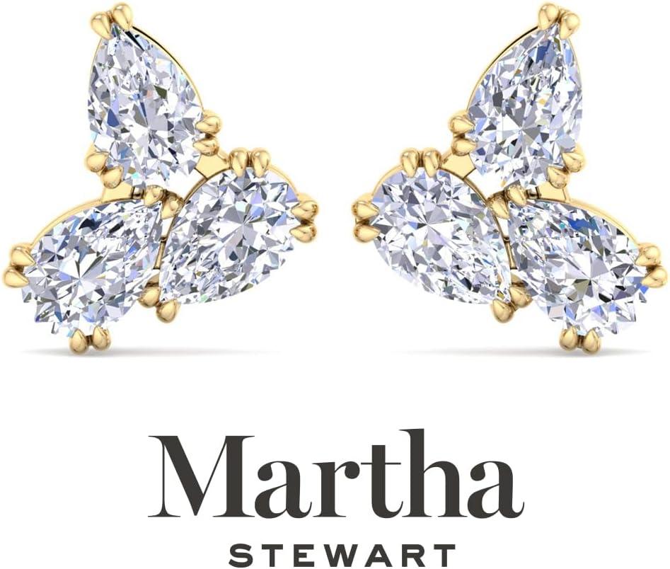 Martha Stewart 3 Carat Lab Grown Diamond Cluster Stud Earrings, Pear Shapes in 14K Gold(yellow-gold)
