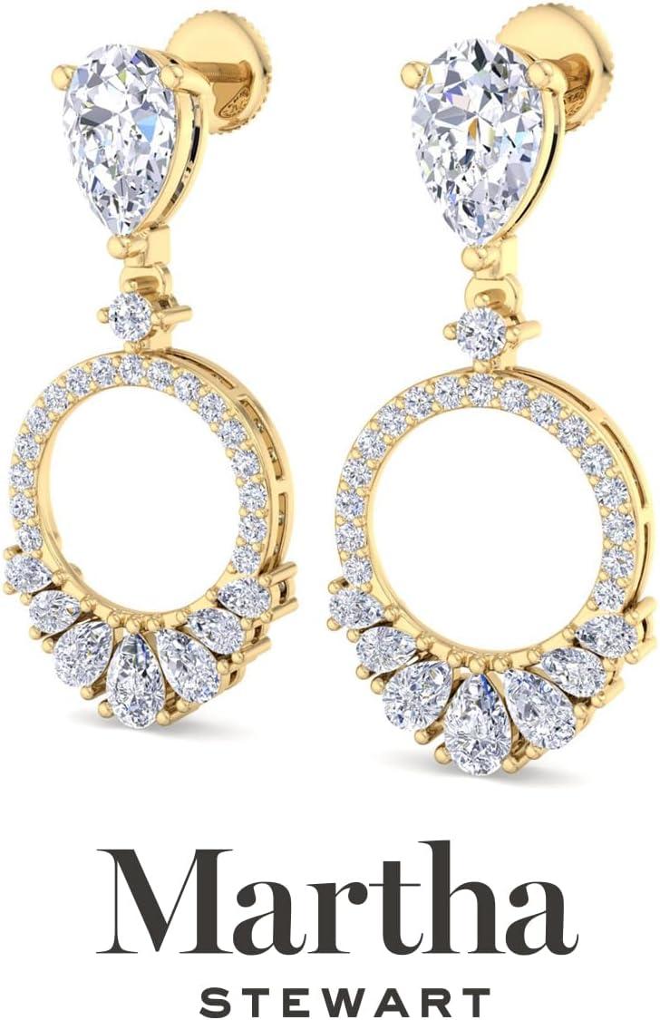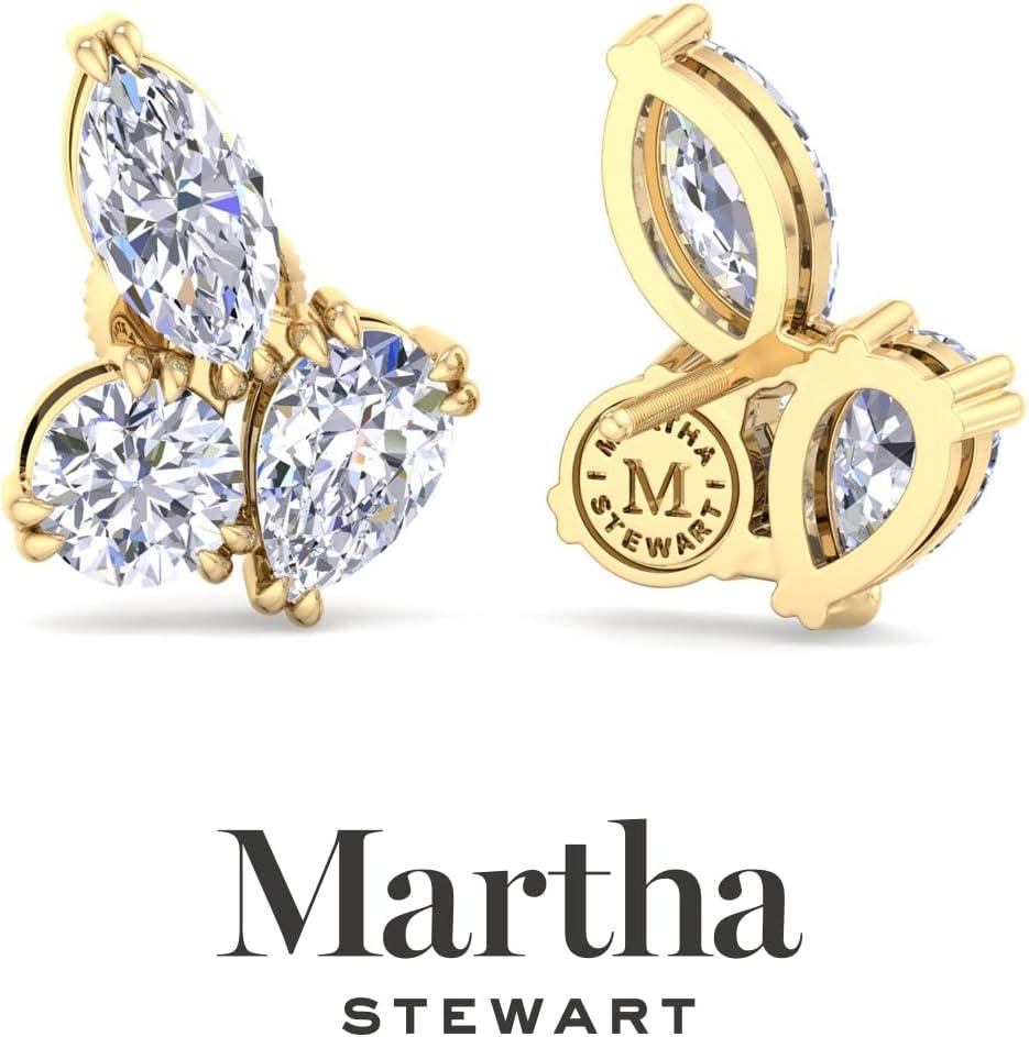 Showcasing class, style and timeless sophistication, the Martha Stewart fine jewelry collection is here to be celebrated. These Martha Stewart lab grown diamond earrings feature 36 round shape lab grown diamonds in G-H color, VS clarity and 16 pear shape lab grown diamonds including two 1 carat diamonds. Total carat weight is 2 carats. These earrings are available in 14 karat white or yellow gold and have post with friction backs. These earrings dangle down 1 1/4 inches! Whether worn for a special event or to enhance everyday elegance, these earrings are sure to become cherished heirlooms. Martha Stewart’s attention to detail and dedication to quality shine through in every piece, making this collection a celebration of refined craftsmanship and timeless beauty.